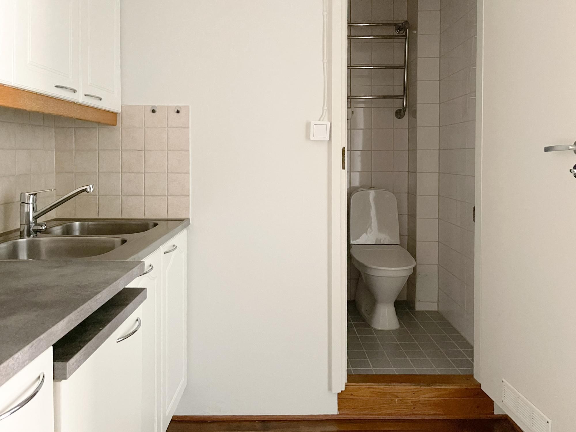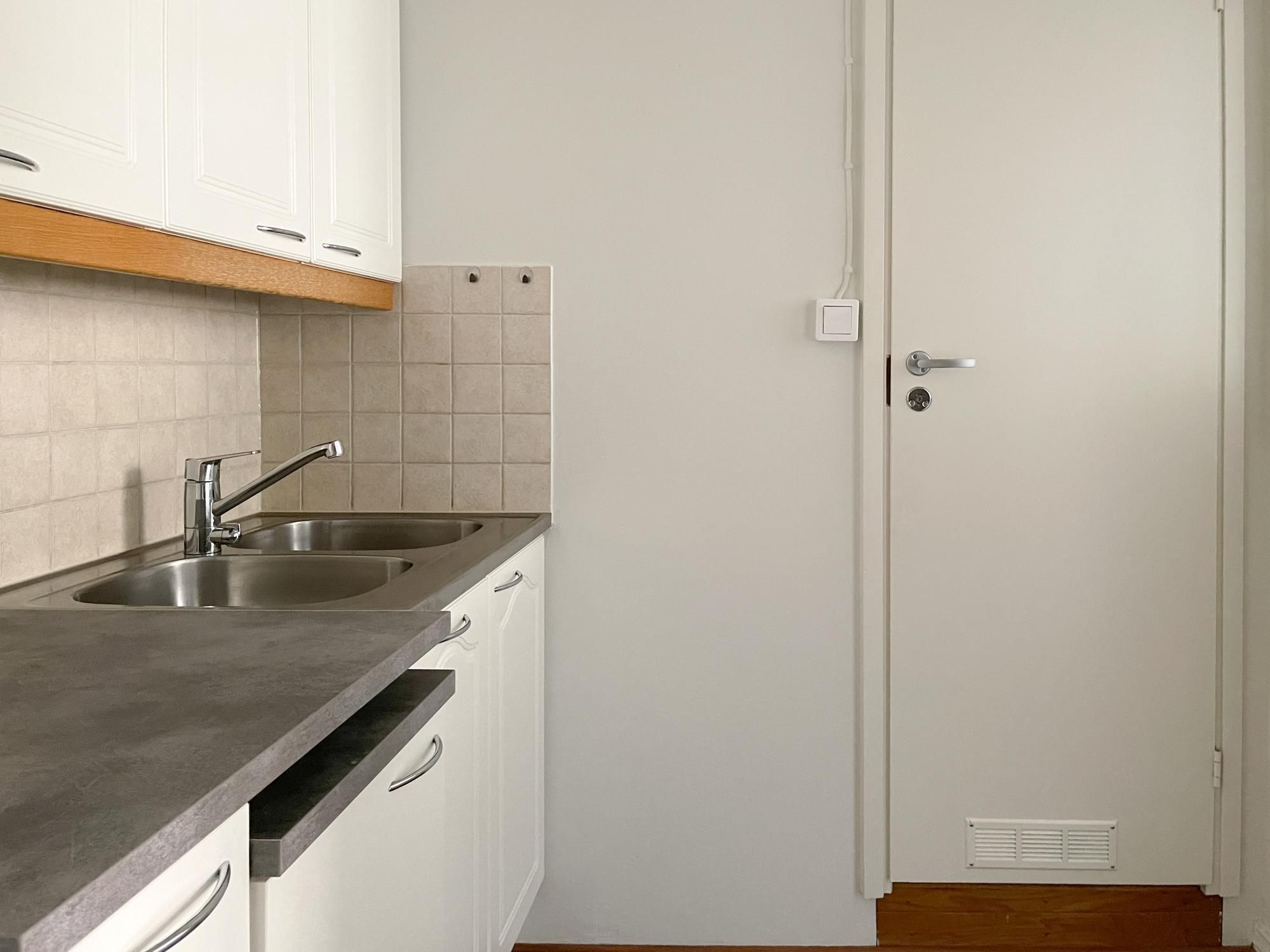 Keittiössä varaus 45 cm astianpesukoneelle ja kylpyhuoneessa pesukoneliitäntä.