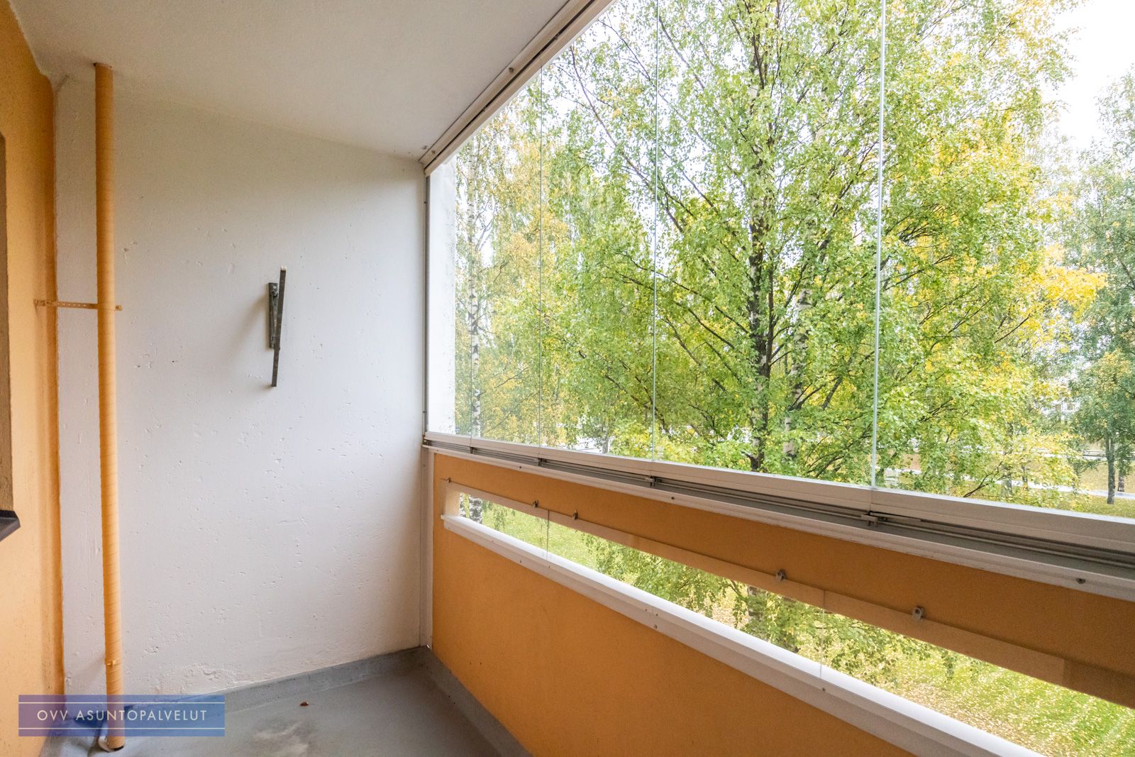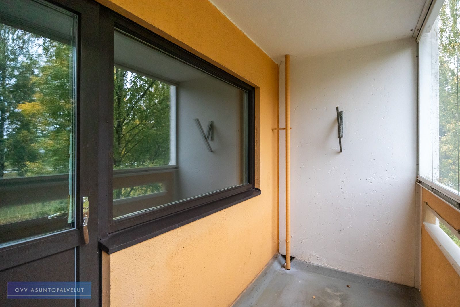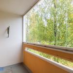 Asunnossa myös lasitettu parveke, josta puistomainen näkymä.