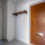 Tilavaan keittiöön sopii ruokailuryhmä oikein hyvin. Lisäksi keittiössä on poikkeuksellisen paljon kaappitilaa. Lisää säilytystilaa löytyy asunnon eteisen kiinteistä kaapistoista.