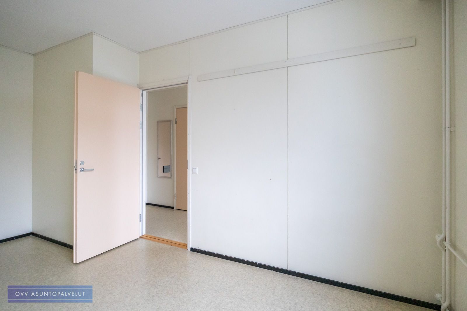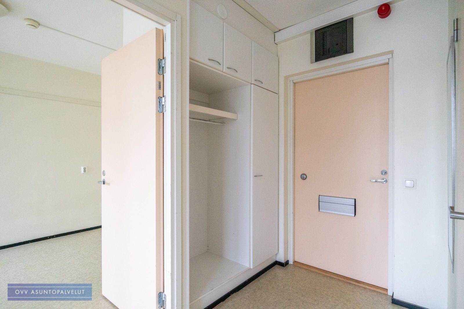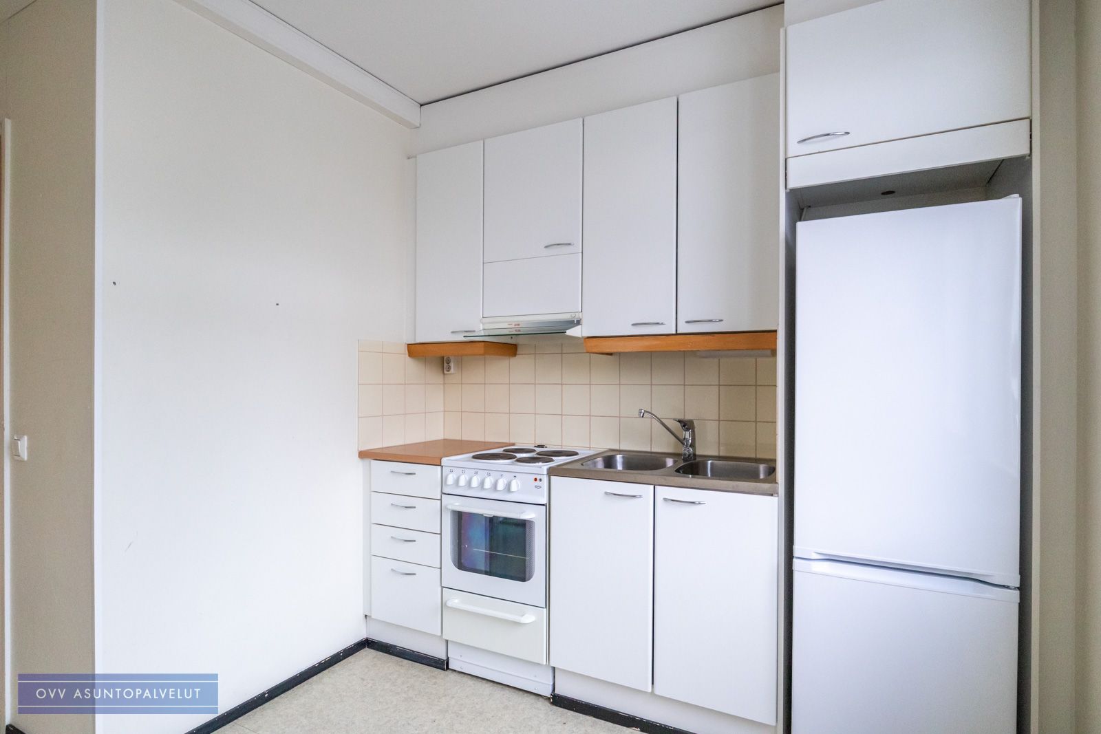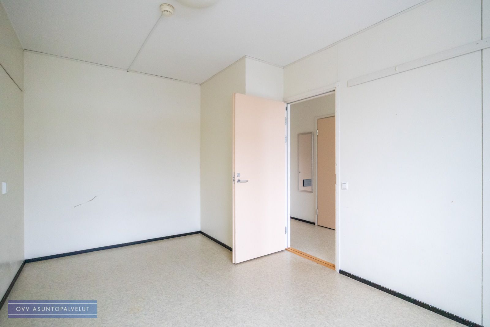 Asunnossa on hyvä pohjaratkaisu, jossa keittiö ja eteistila ovat yhtä tilaa ja oven takana on toinen huone, joka toimii olohuoneena sekä makuuhuoneena.