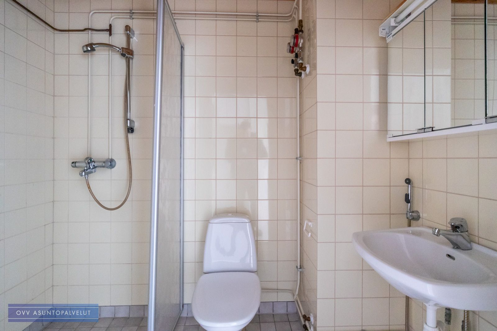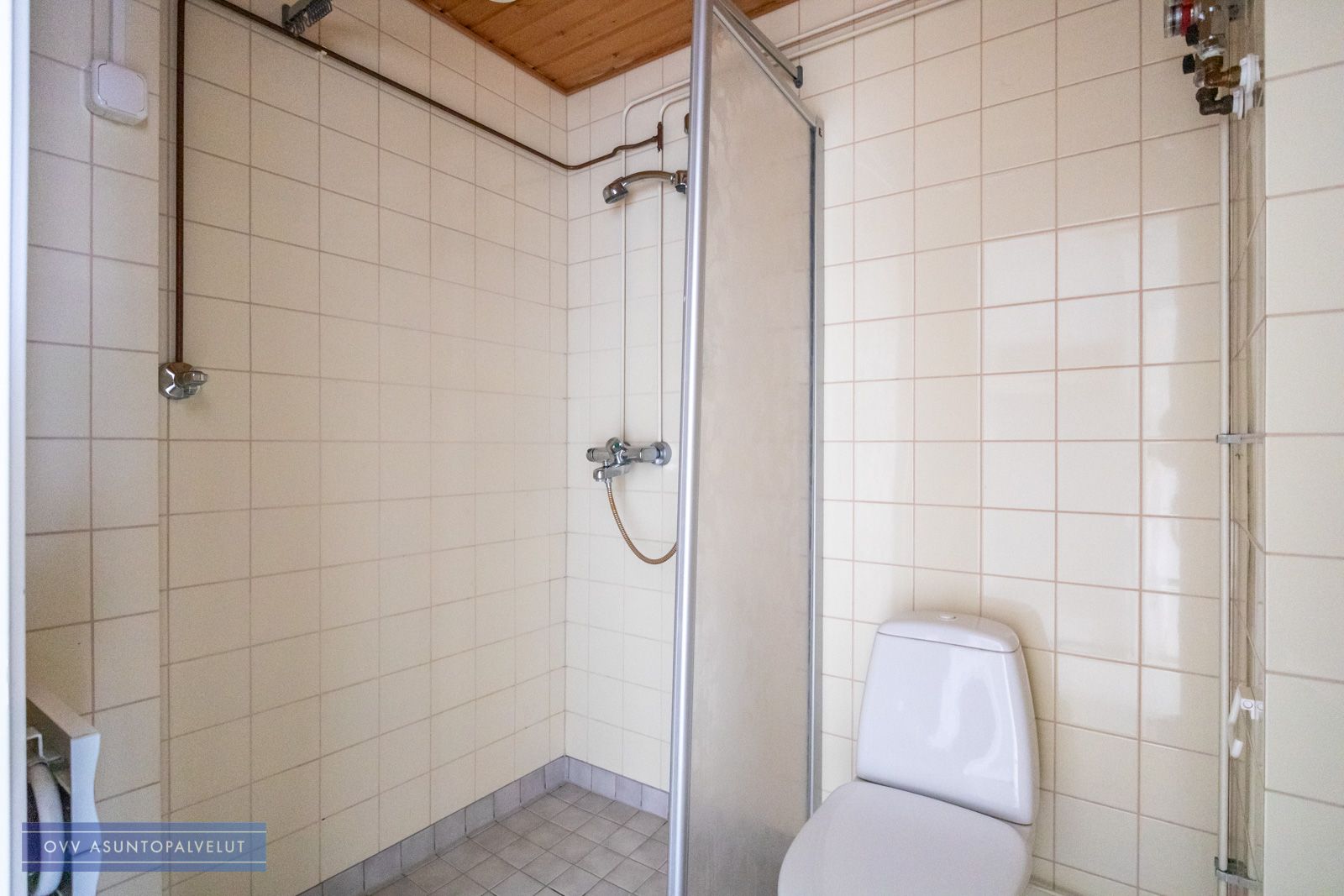 Kylpyhuone on tilava ja sinne sopii pyykinpesukone.