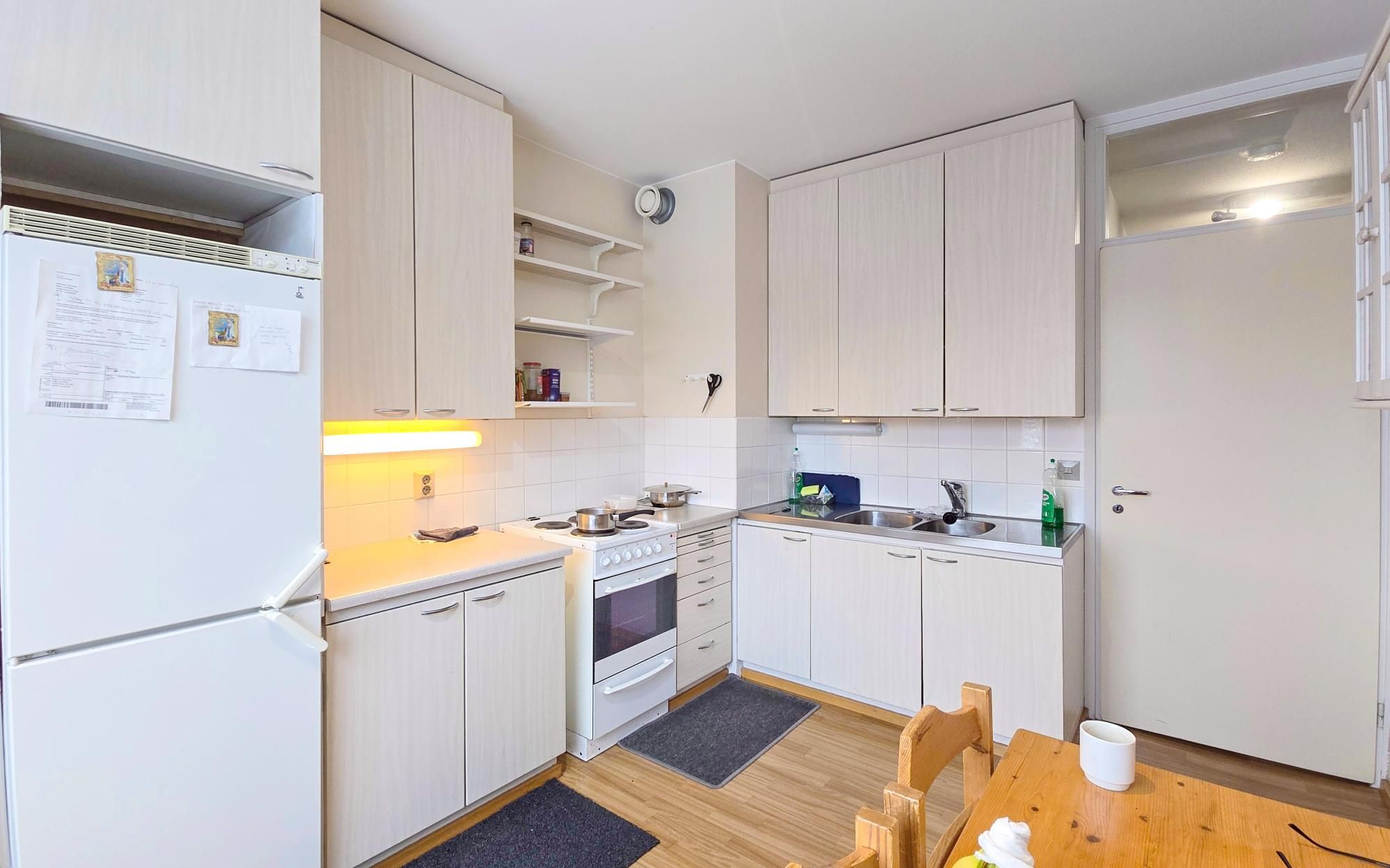 Asunnossa on erillinen keittiö. Asunnon kylpyhuone on kaakeloitu ja siellä on valmiina pyykinpesukone asukkaan käytettävissä.