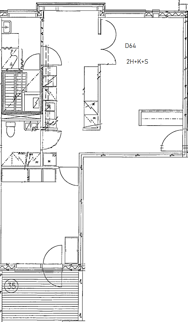Kerrostalo, 64 m², 2h + kk + kph + s + terassiparveke