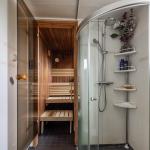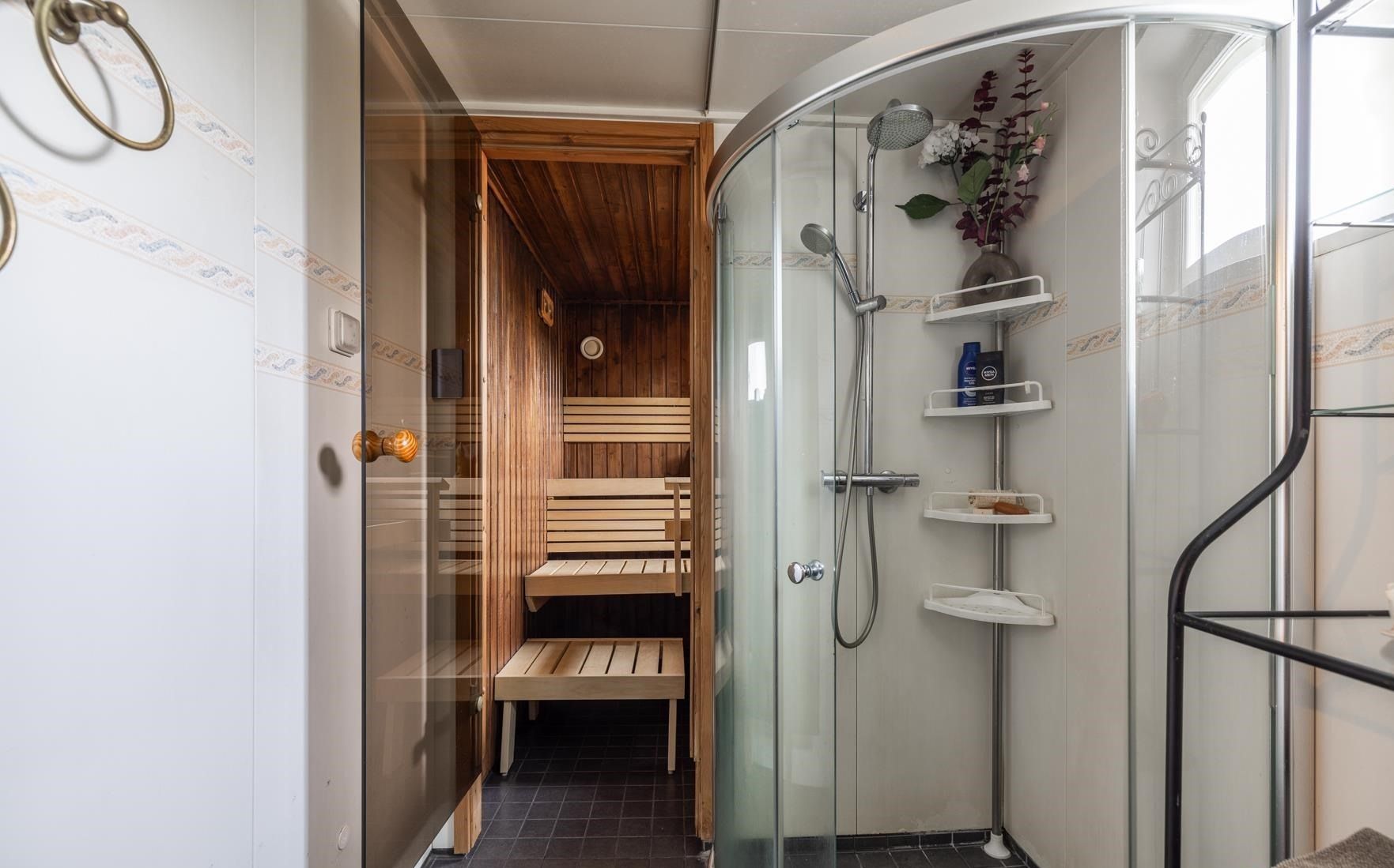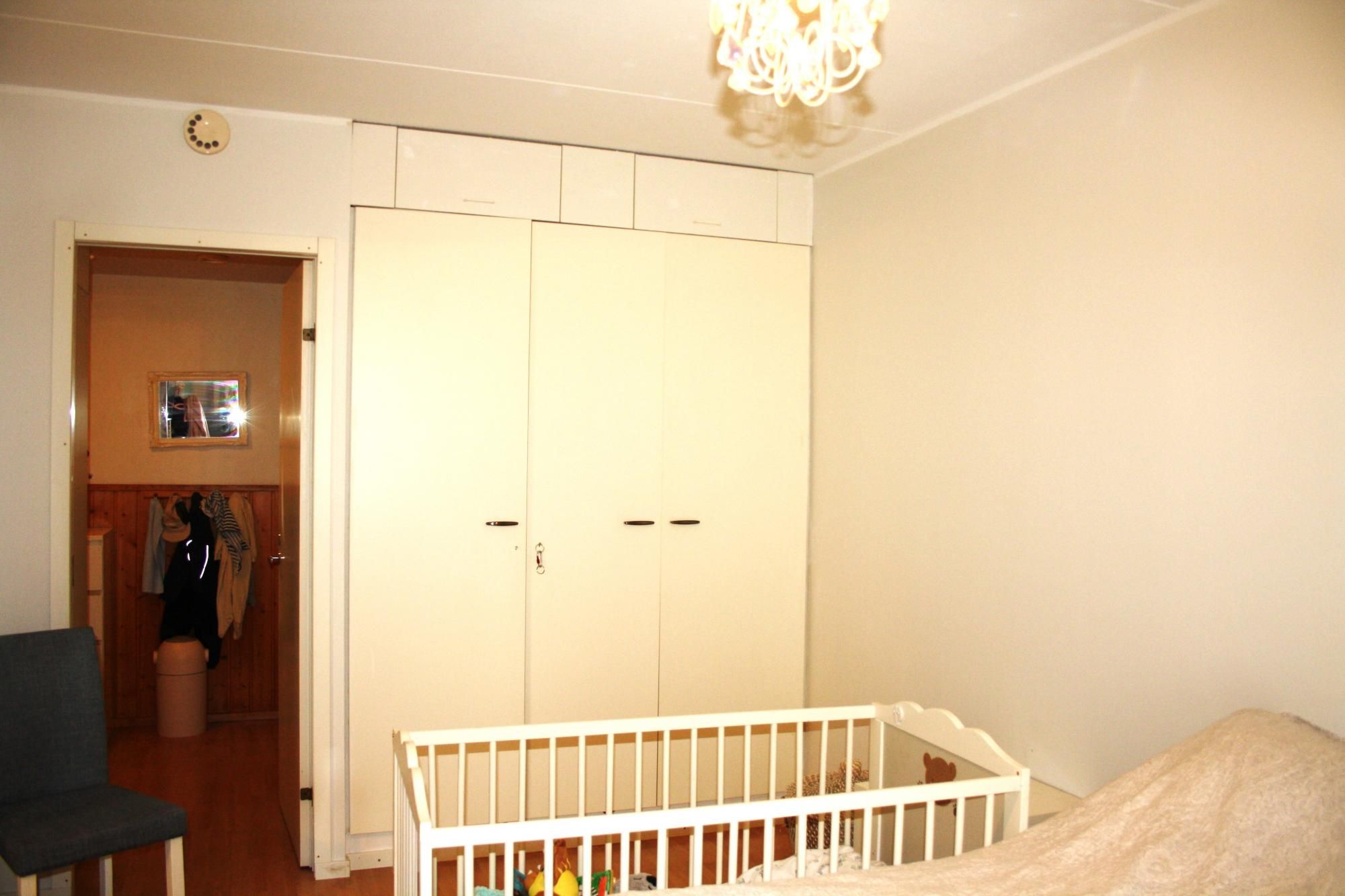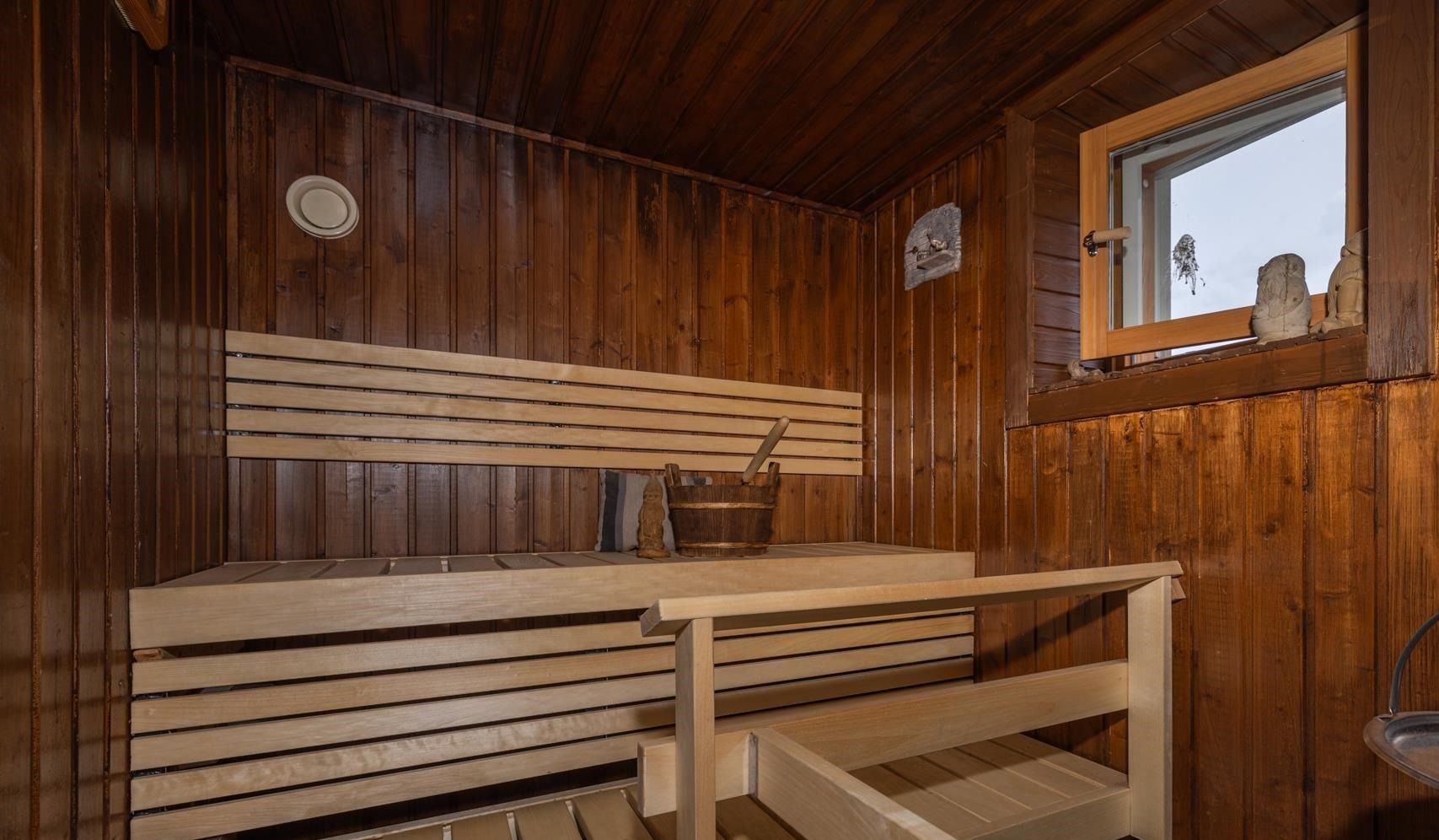 Kolme makuuhuonetta ja erillinen pukeutumistila saunan vieressä.