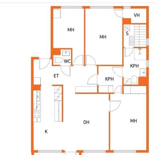 Kaksi wc.tä. Vaatehuone ja komerotilaa reilusti.