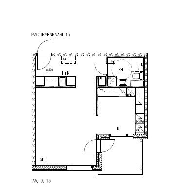Kerrostalo, 45 m², 1h + k + kph + parveke