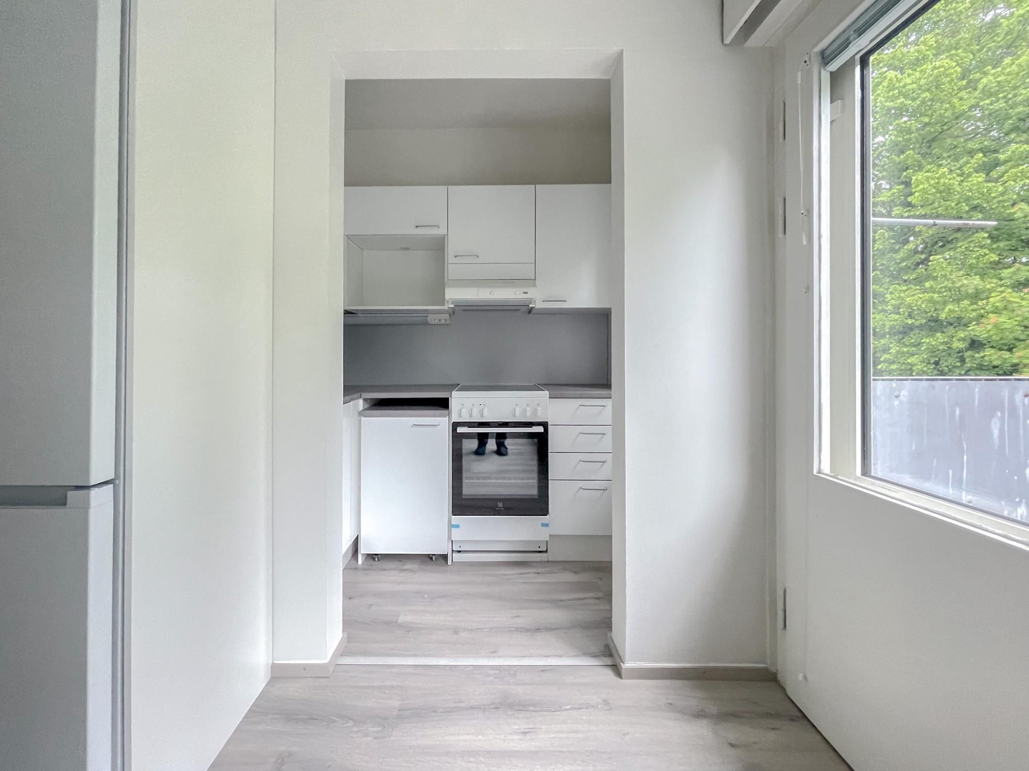 Rauhallisella sijainnilla heti vapaana kompakti ja toimiva ylimmän kerroksen koti. Keittiöön mahtuu kapea astianpesukone ja asunnolla on oma pieni parveke. Alkovi jakaa huoneen toimivasti.
