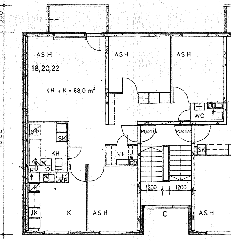 Kerrostalo, 88 m², 4h + k + vh + lasitettu parveke