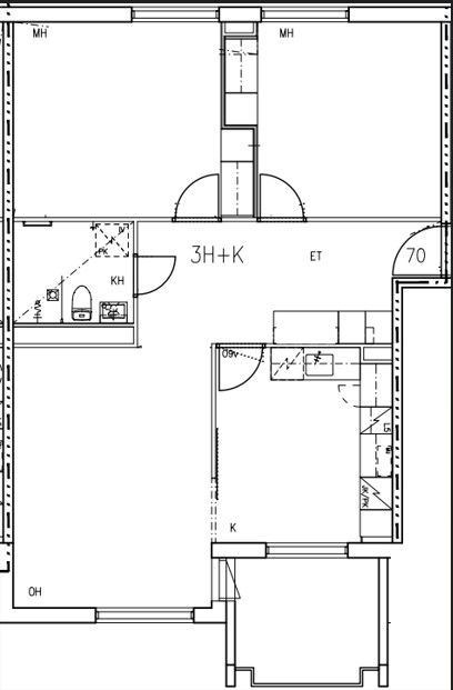 Kerrostalo, 74,5 m², 3h + k + kph + parveke