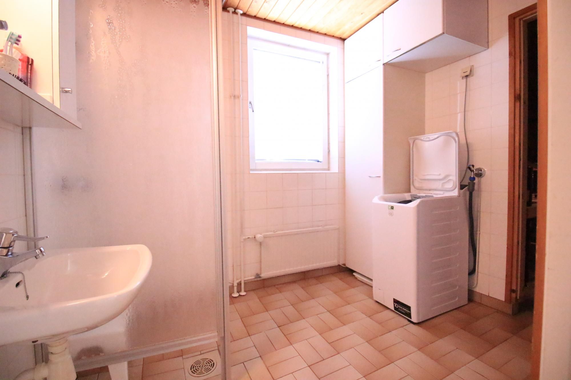 Kylpyhuoneessa paikka pyykinpesukoneelle.