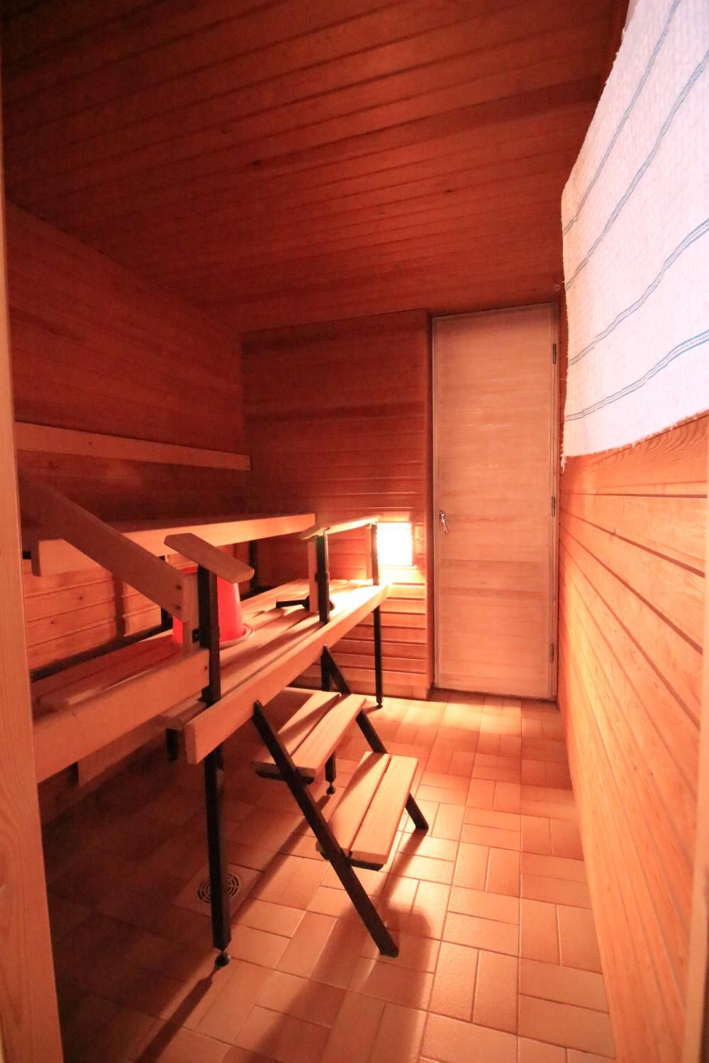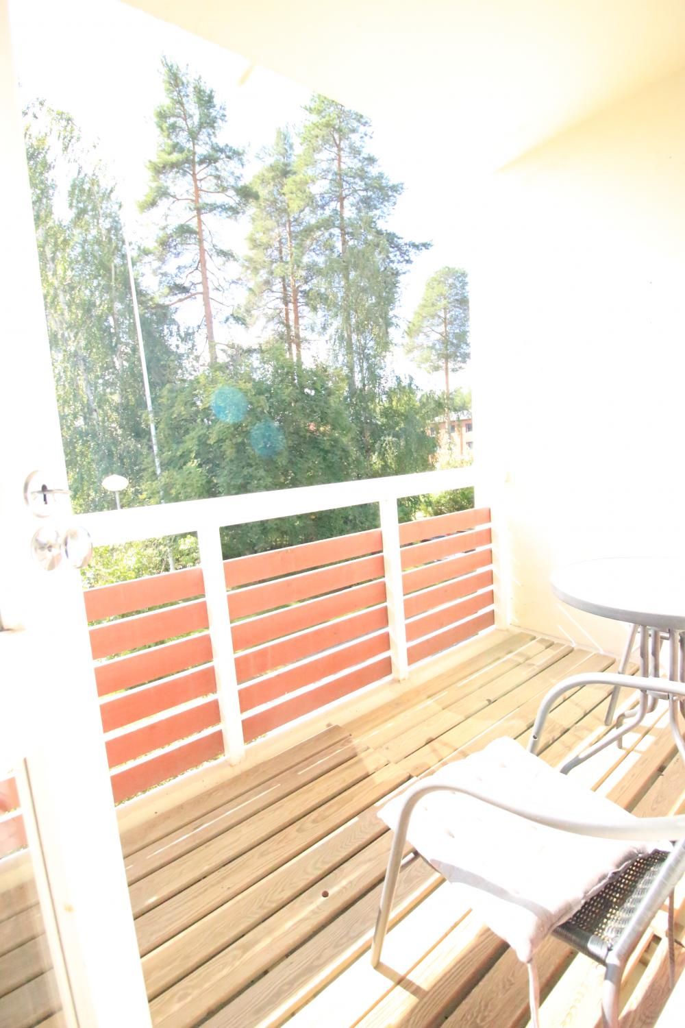 Oma sauna ja parveke.