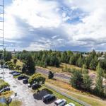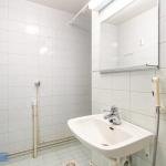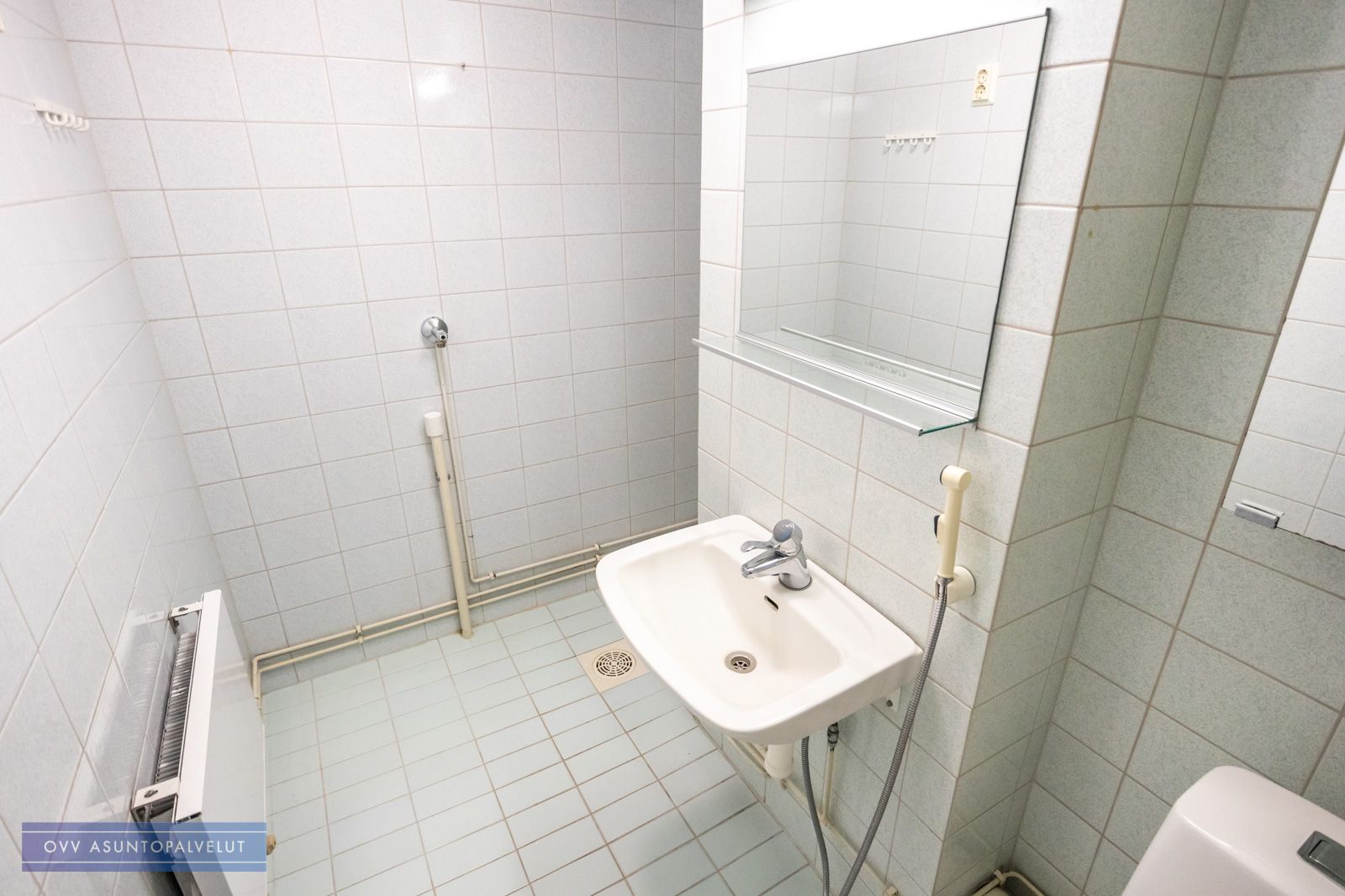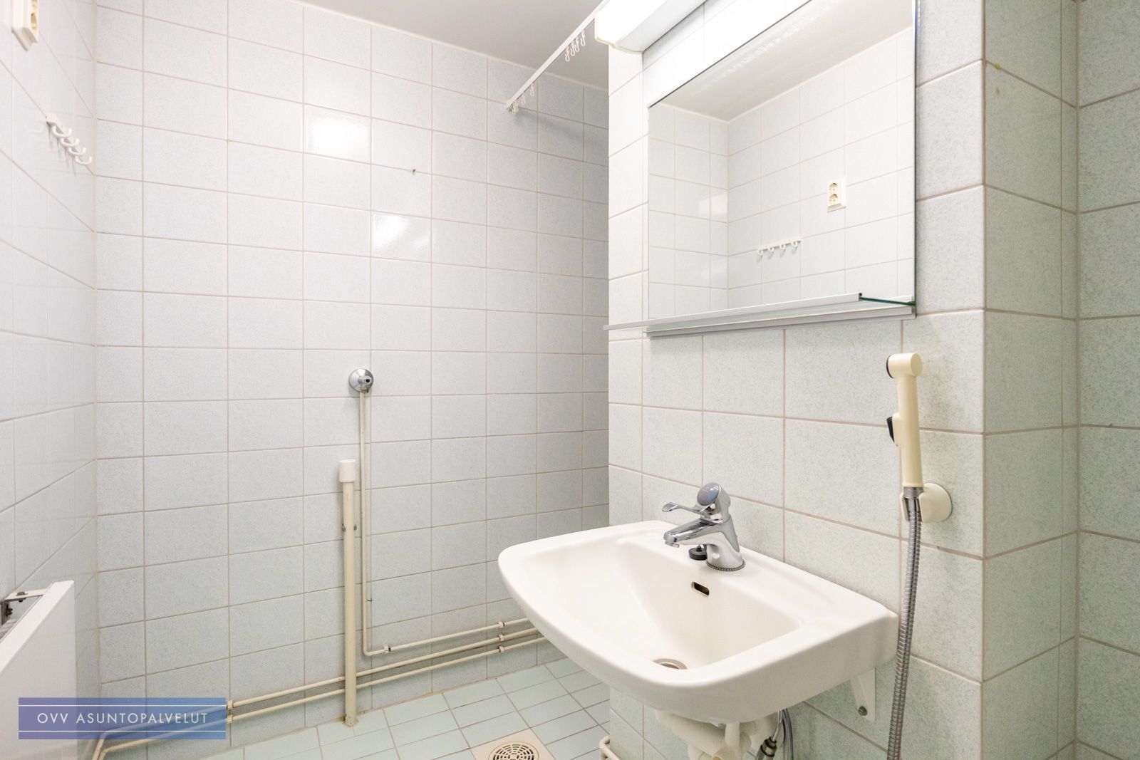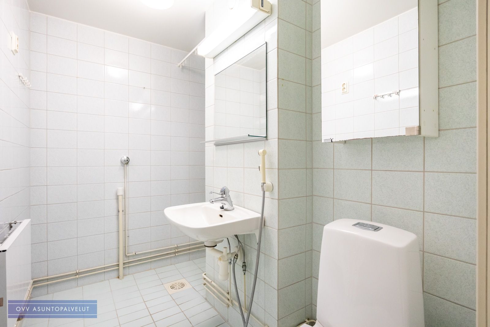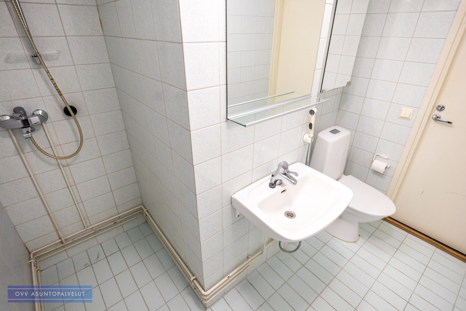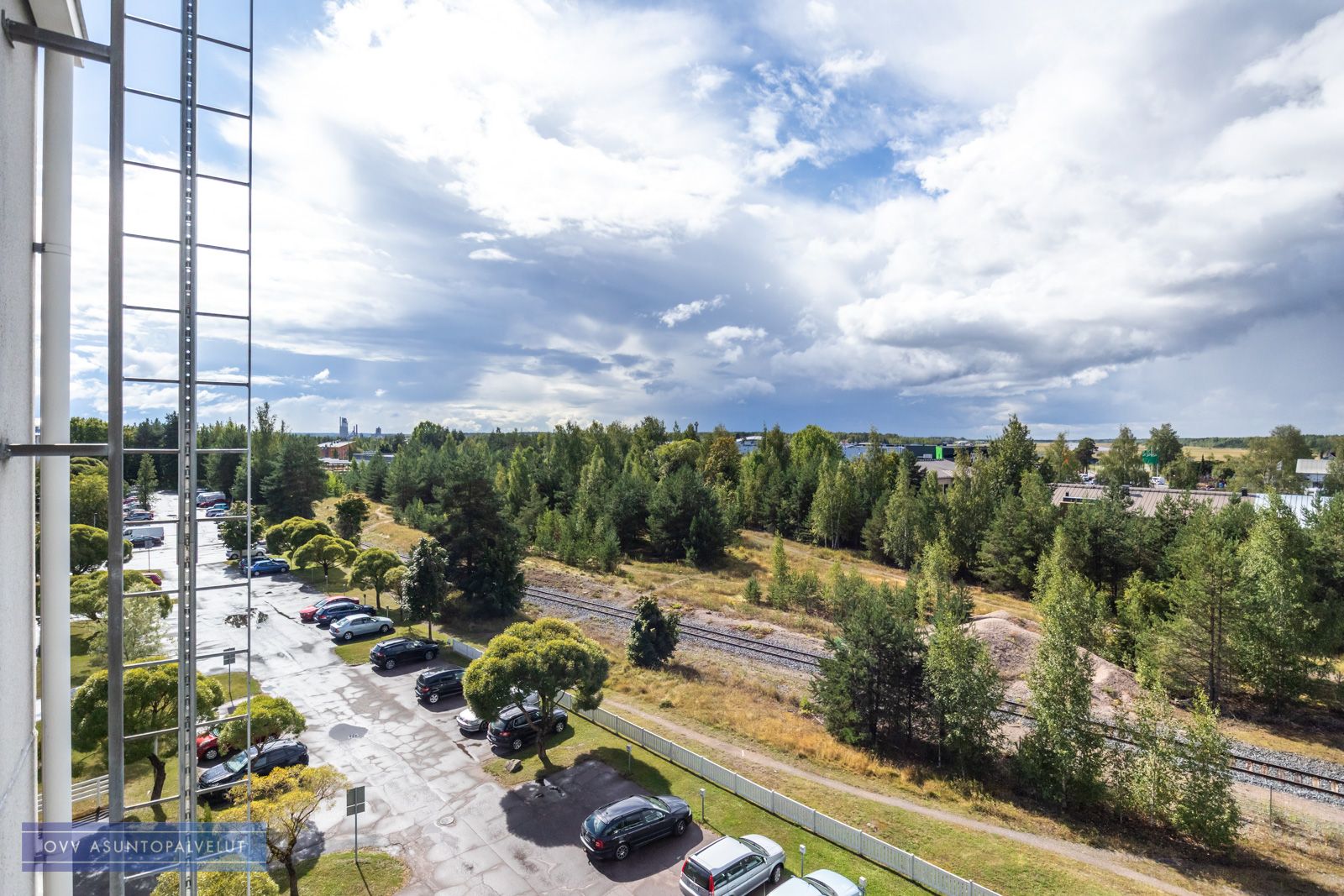 Asuntoon tultaessa eteisen yhteydessä on tilava kylpyhuone, jossa paikka ja liitännät pyykinpesukoneelle. Olohuone avautuu keittonurkkaukseen. Keittiön puolella hyvin kaappi ja laskutilaa sekä käynti lasitetulle parvekkeelle, jossa oma rauha puiden yllä. Keittiöstä löytyy valmiiksi astianpesukone.