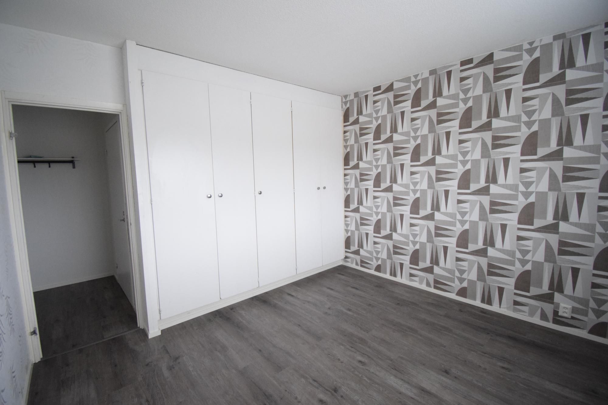 Eteisessä ja makuuhuoneessa on runsaasti kaappitilaa. Pesuhuoneessa on hyvin tilaa pyykinpesukoneelle. Parvekkeelta avautuvat mukavat näkymät leikkikentälle.