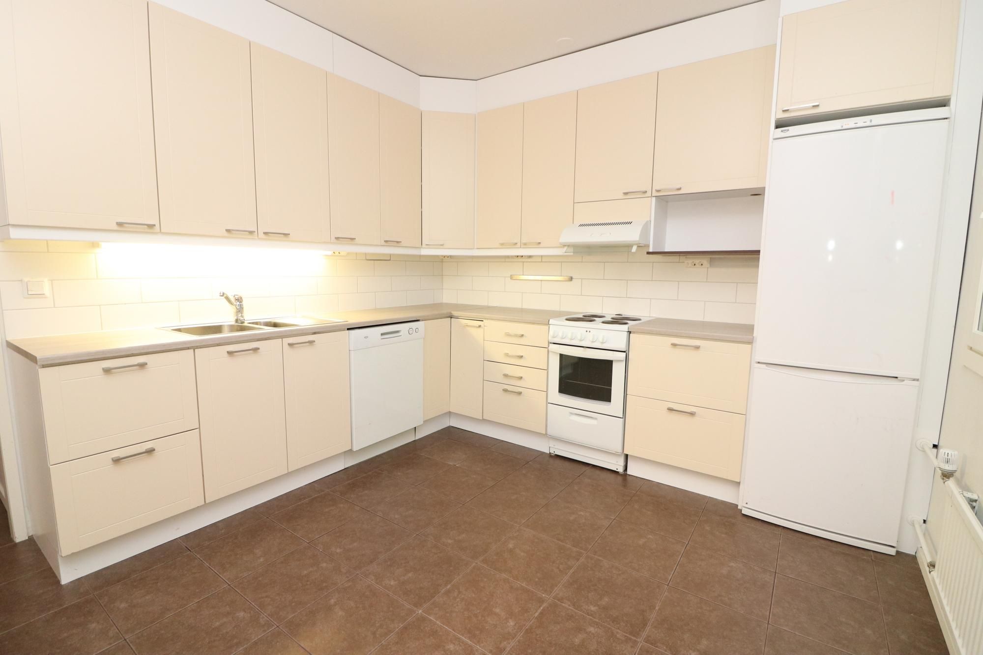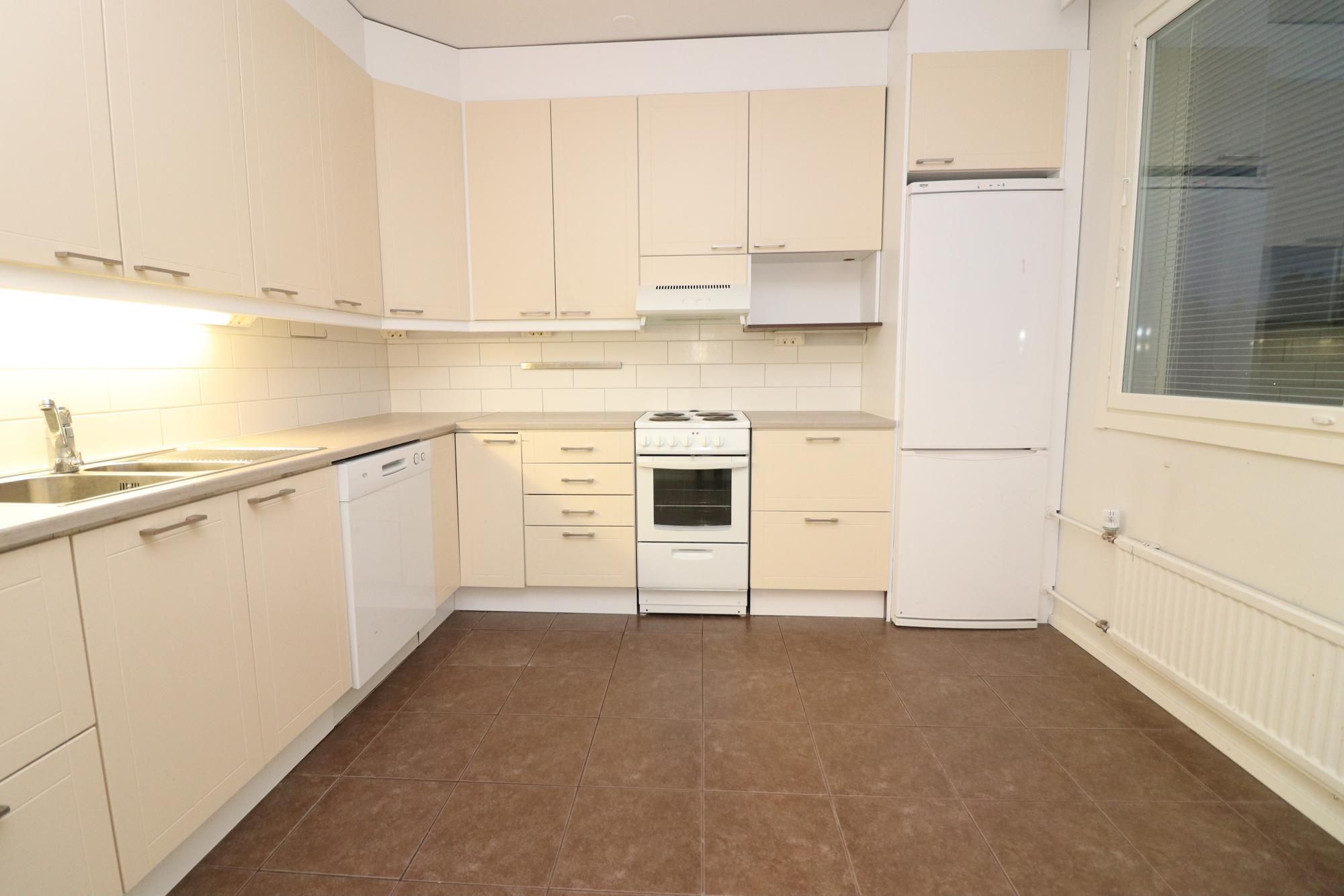 Keittiössä on runsaasti kaappitilaa ja varusteluun kuuluu astianpesukone, jääkaappipakastin, uuni, liesi ja liesituuletin. Tilaa myös hyvin ruokapöydälle. Olohuoneesta on käynti lasitetulle parvekkeelle. Säilytystilaa löytyy hyvin sekä makuuhuoneista että eteisestä. Kylpyhuoneessa tila ja liitäntä pyykinpesukoneelle.