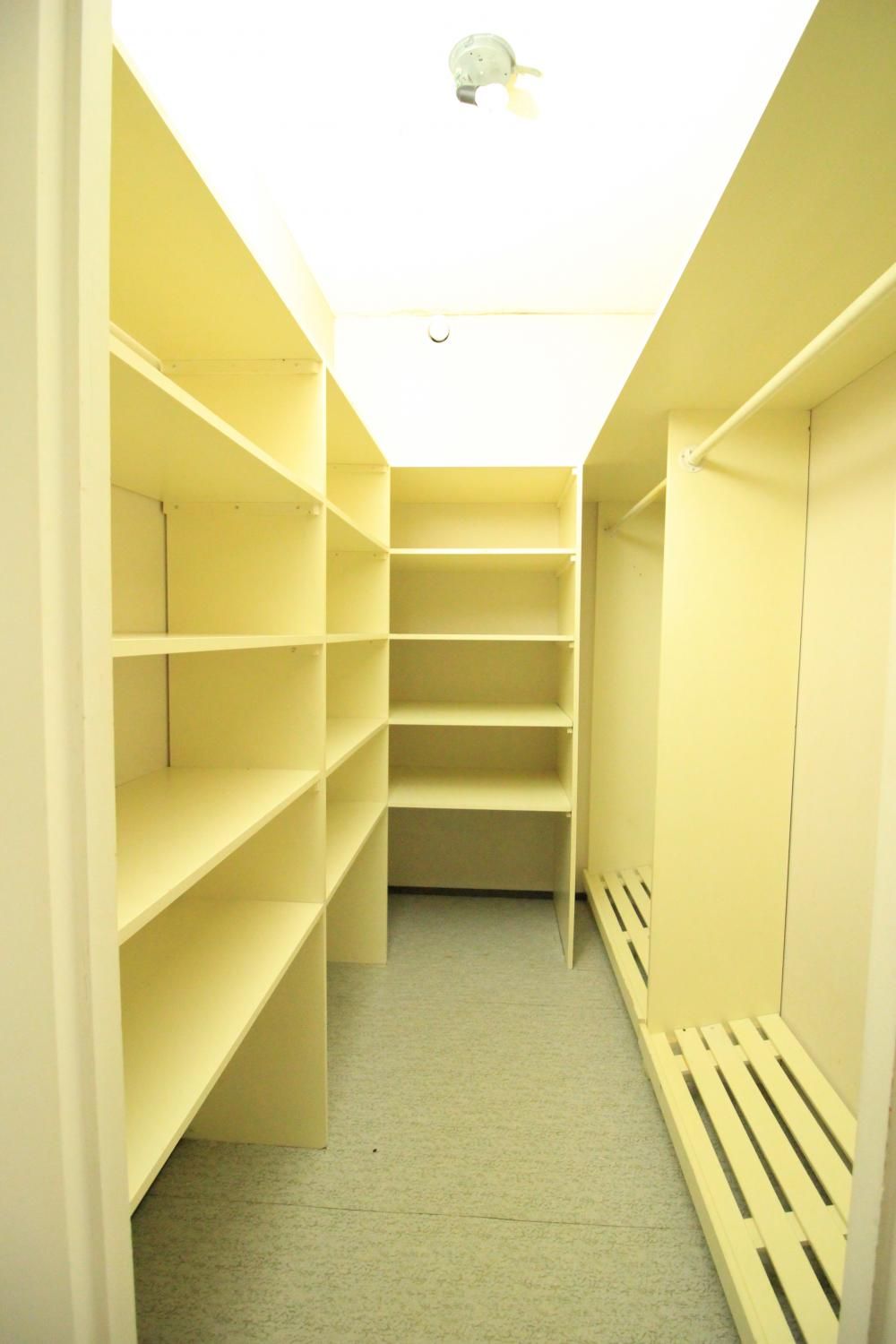Säilytystilana erillinen vaatehuone.
