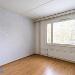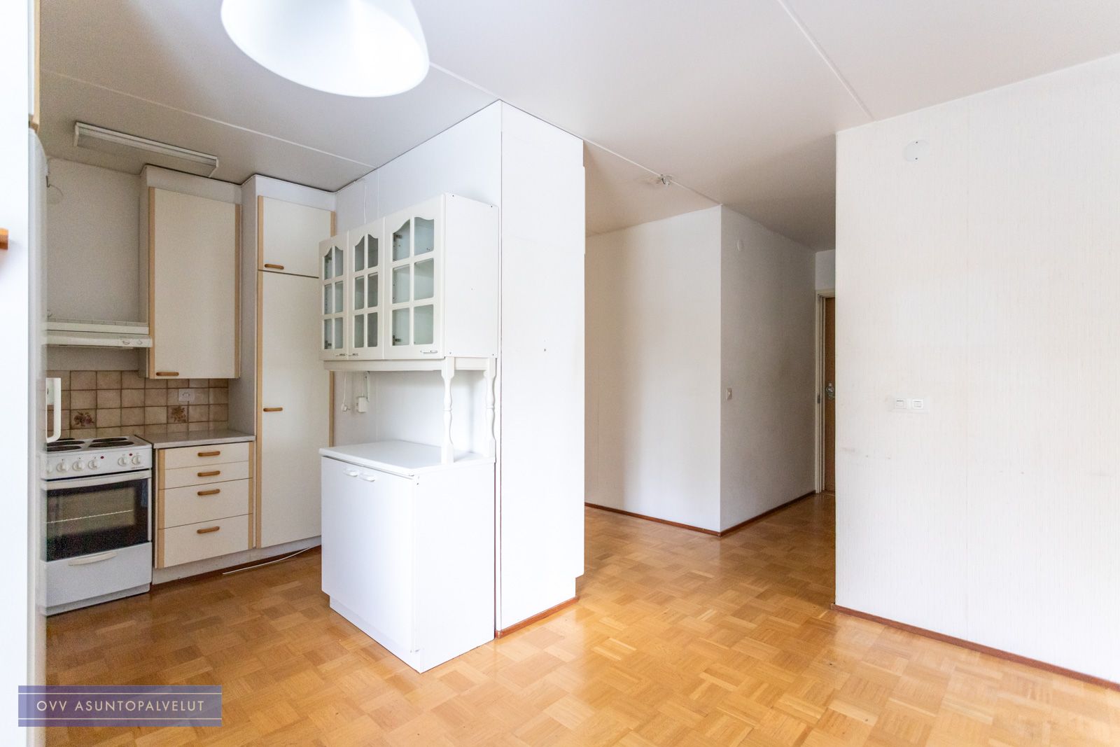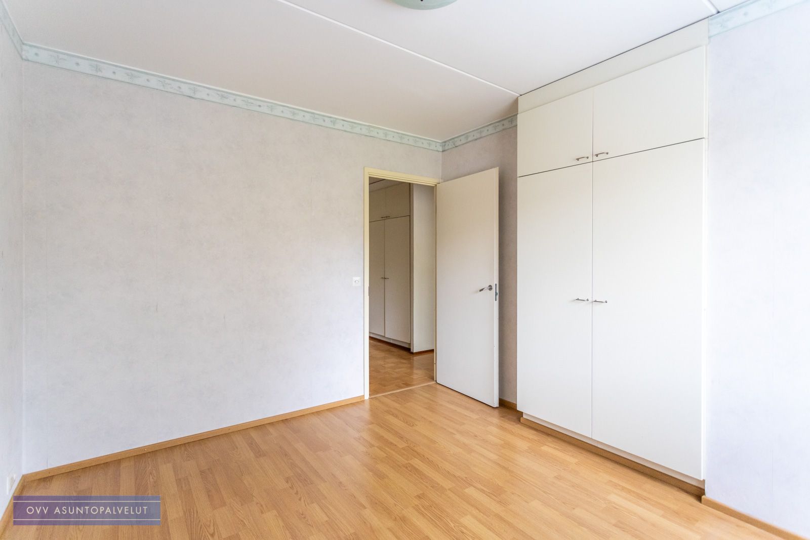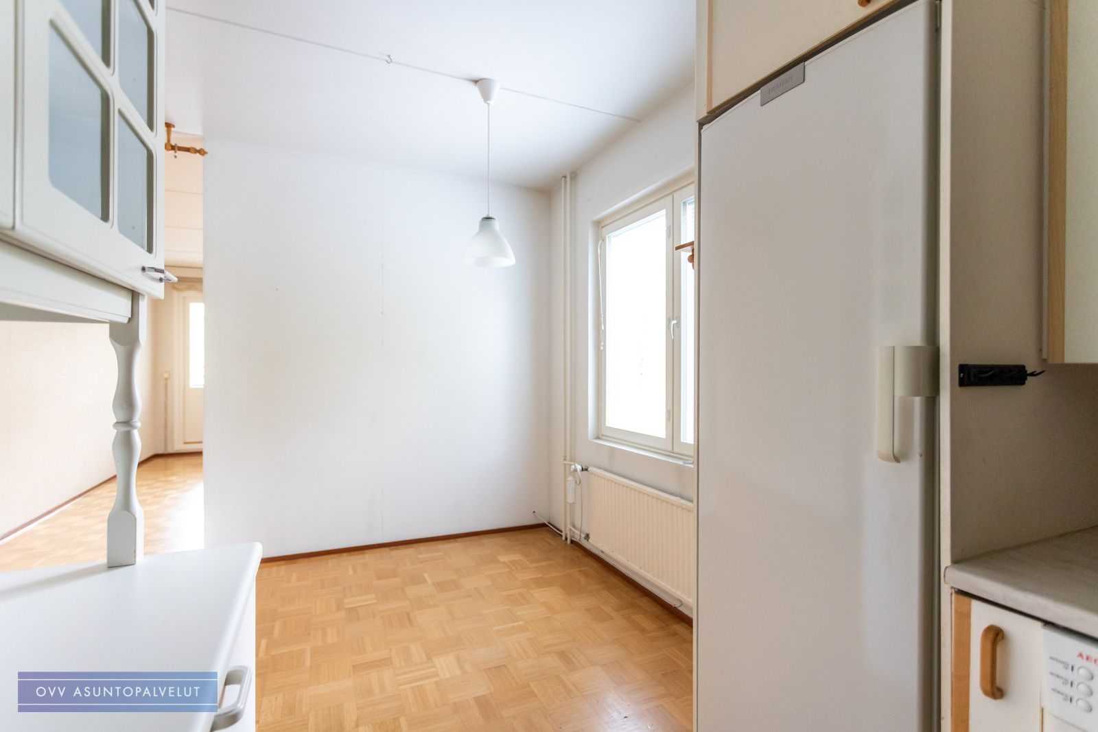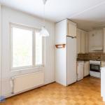 Keittiössä hyvin kaappitilaa ja erillinen ruokailutila. Makuuhuoneet vierekkäin ja molemmista löytyy säilytystilaa.