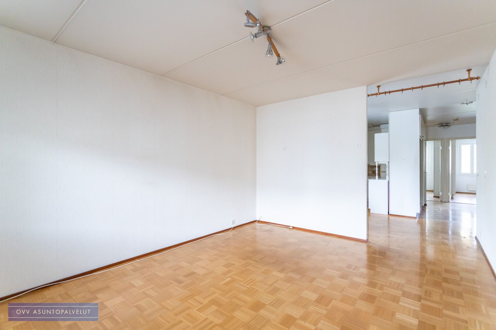 Asunnossa selkeä pohjaratkaisu, jossa toisessa päässä asuntoa olohuone ja toisessa päässä makuuhuoneet. Väliin jää keittiö ruokailutiloineen sekä wc, kylpyhuone sekä sauna.