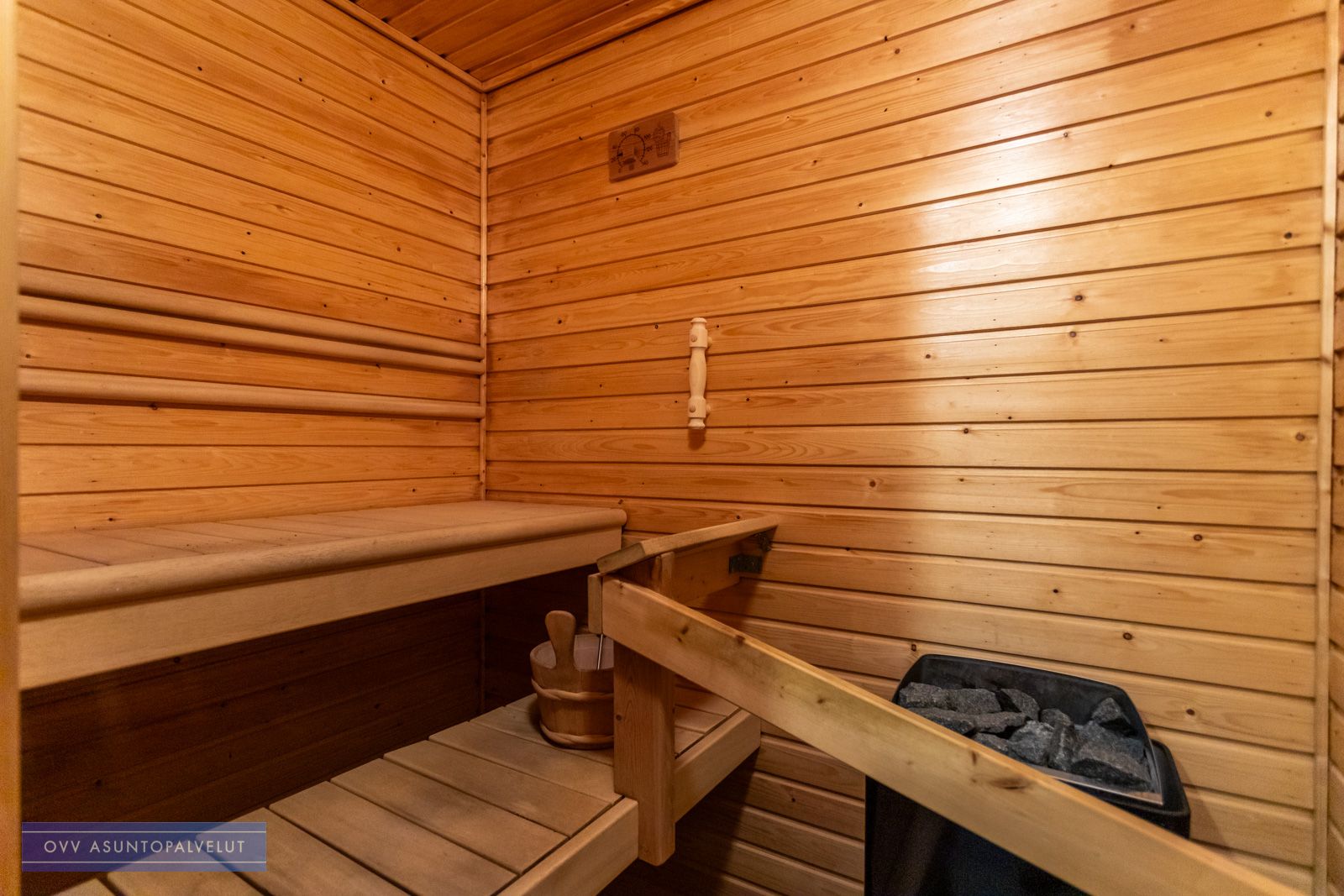 Taloyhtiön tilat:Sauna, talopesula, kuivaushuone, urheiluvälinevarasto,