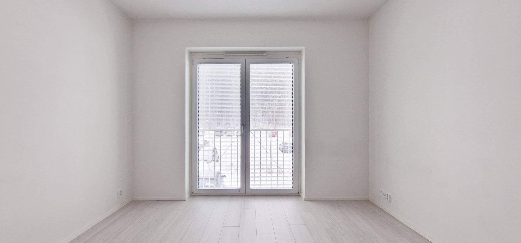 Valoisa huoneisto ranskalaisella parvekkeella. Tehokas pohjaratkaisu.