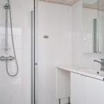 Kylpyhuoneesta löytyy liitäntä sekä tila pesukoneelle.
