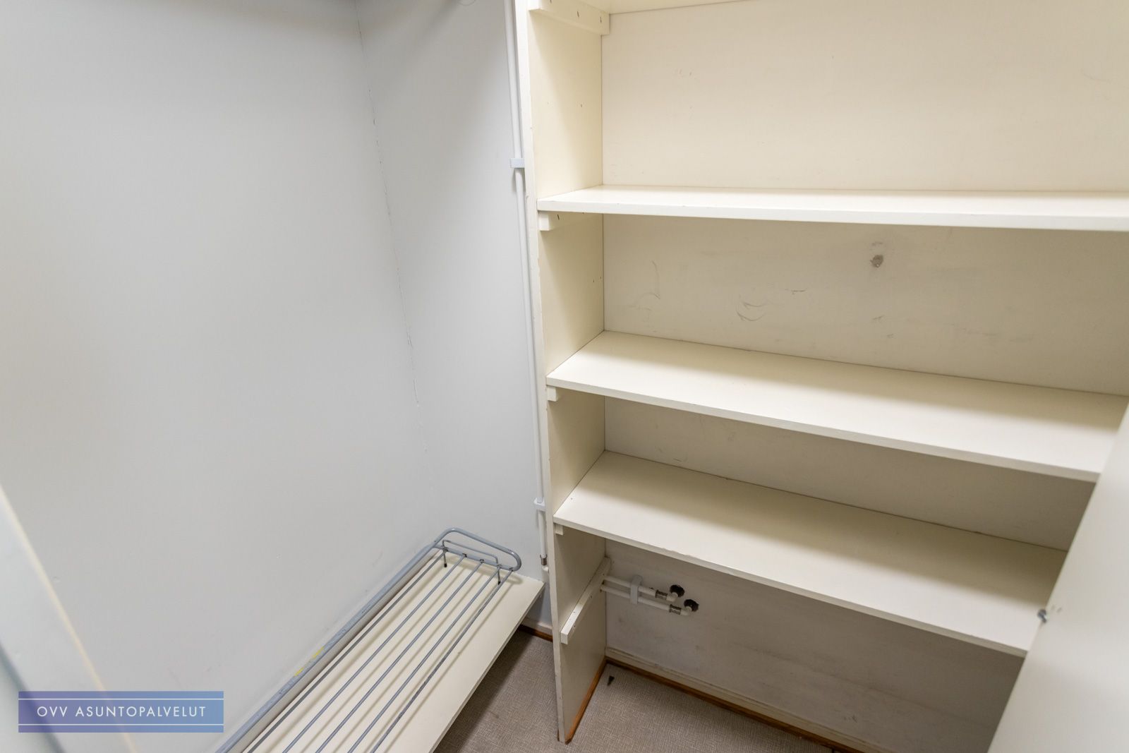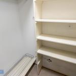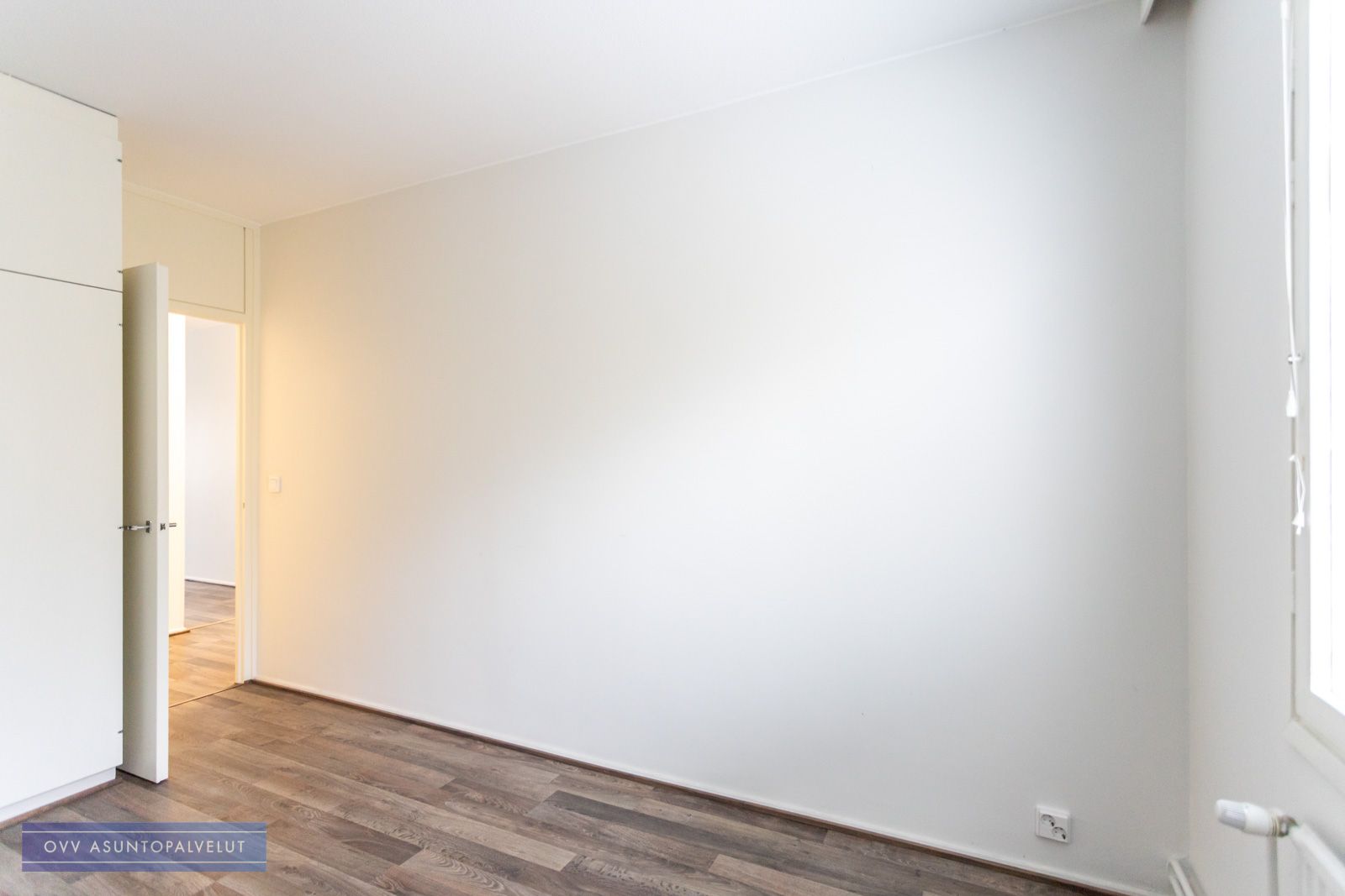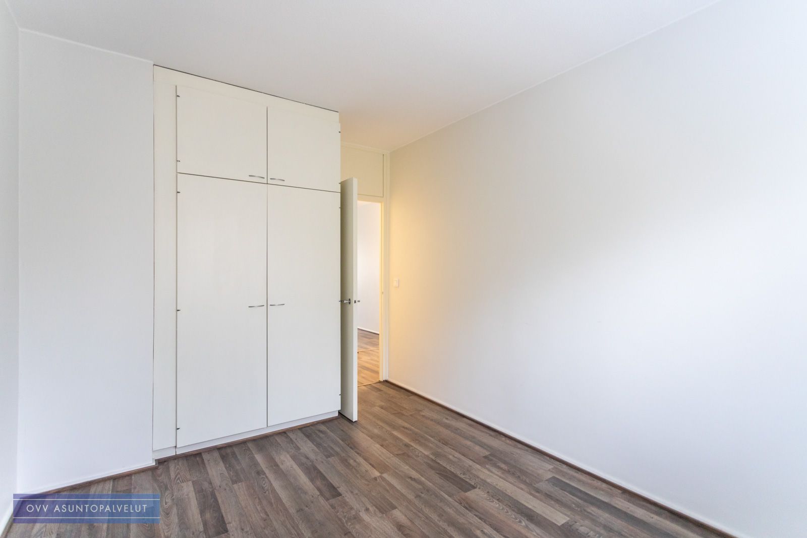 Makuuhuoneessa kiinteitä kaapistoja säilytystä varten. Lisäksi eteisestä löytyy erillinen vaatehuone.