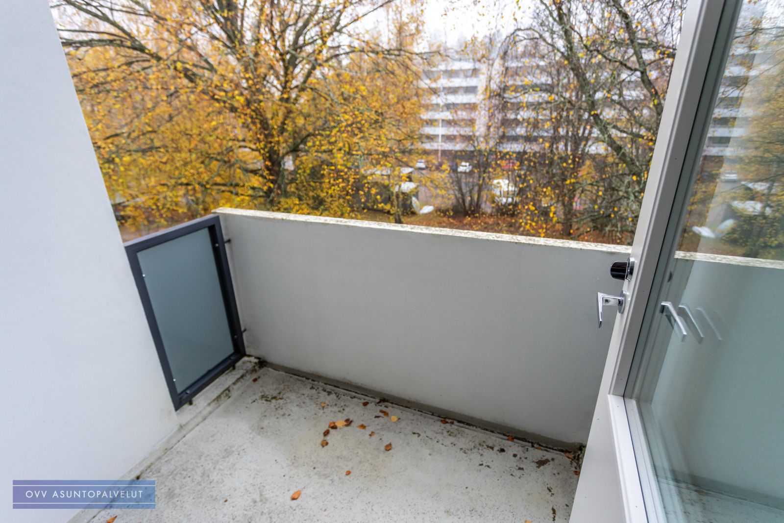 Tilavasta olohuoneesta käynti parvekkeelle.