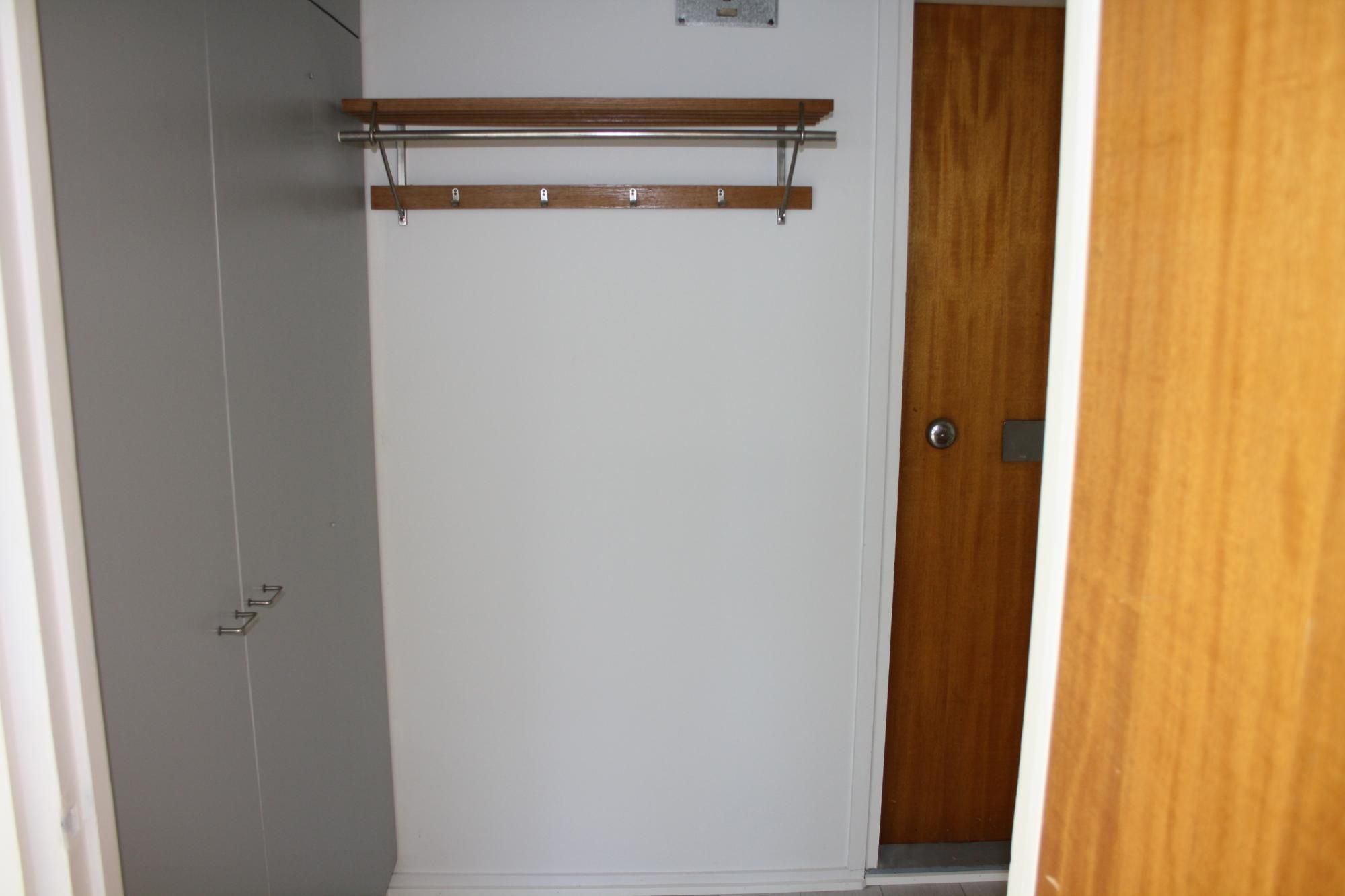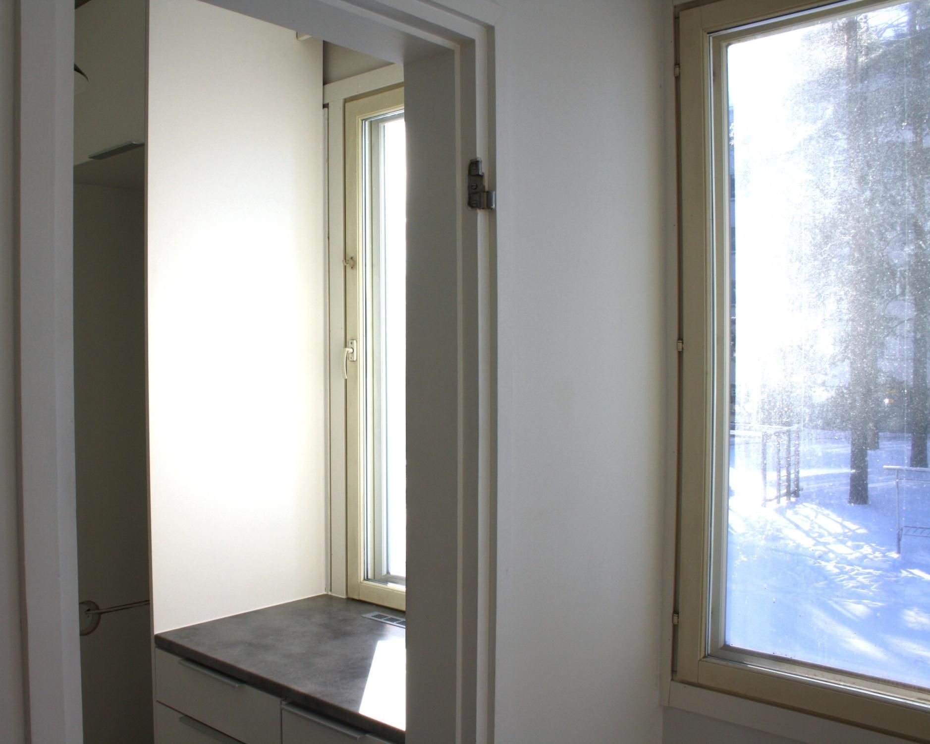 Alkovi ja eteisessä komerotilaa.