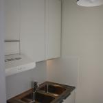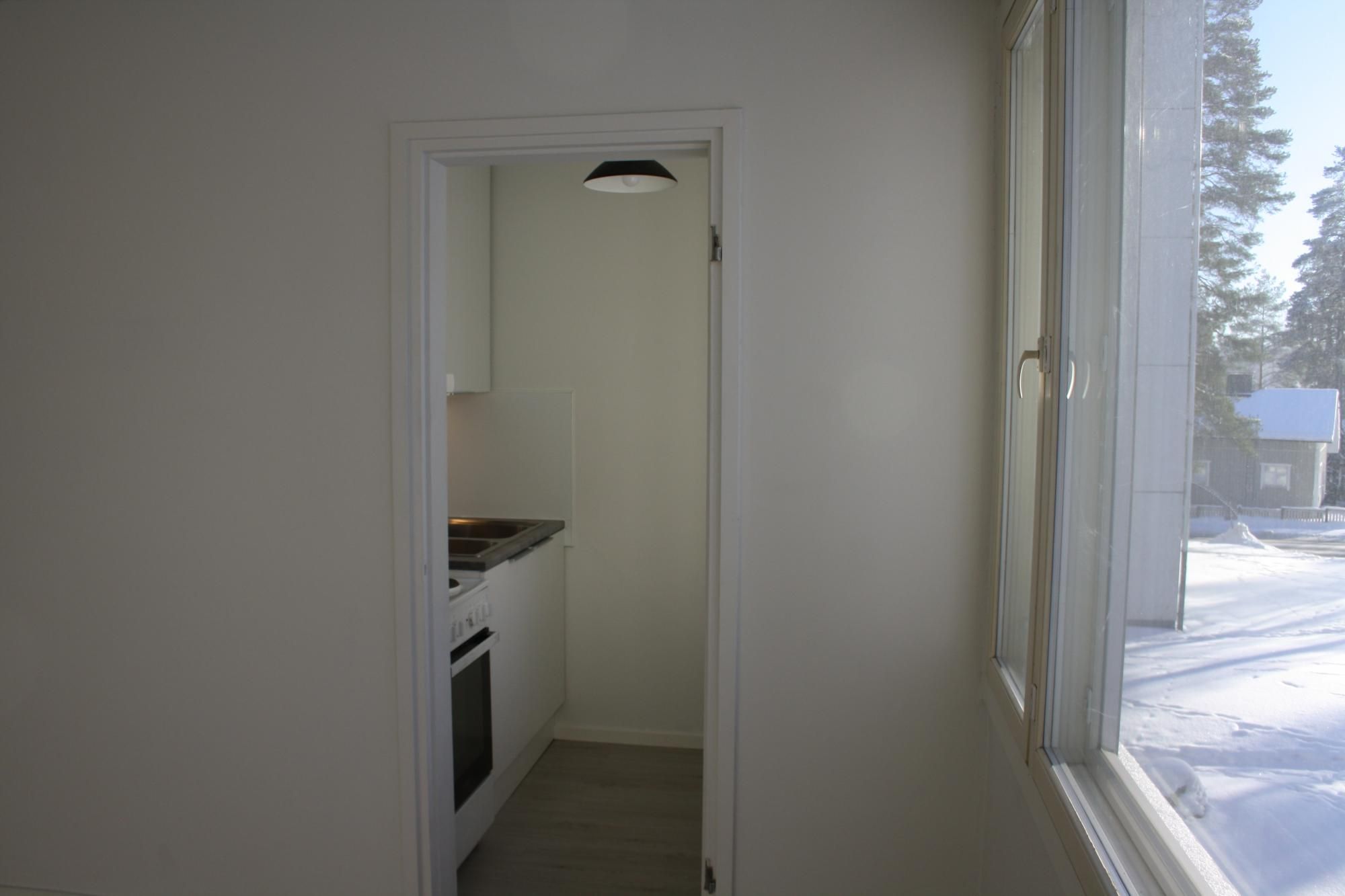 Siistikuntoinen yksiö Kirjavatolpalla. Keittiö remontoitu, uusi jääkaappi-pakastin puuttuu vielä kuvasta.