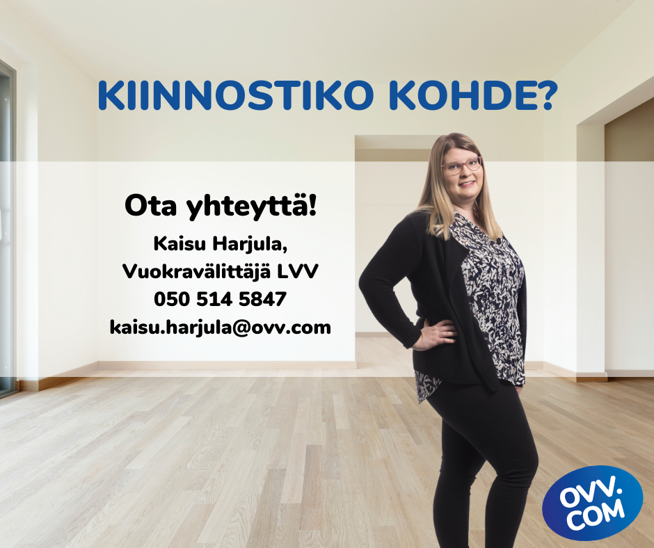Tee pikimmiten hakemus osoitteessa: www.ovv.com. Hakemus ei sido vuokraamaan vaan voit käydä katsomassa asuntoa ennen lopullista päätöstä.