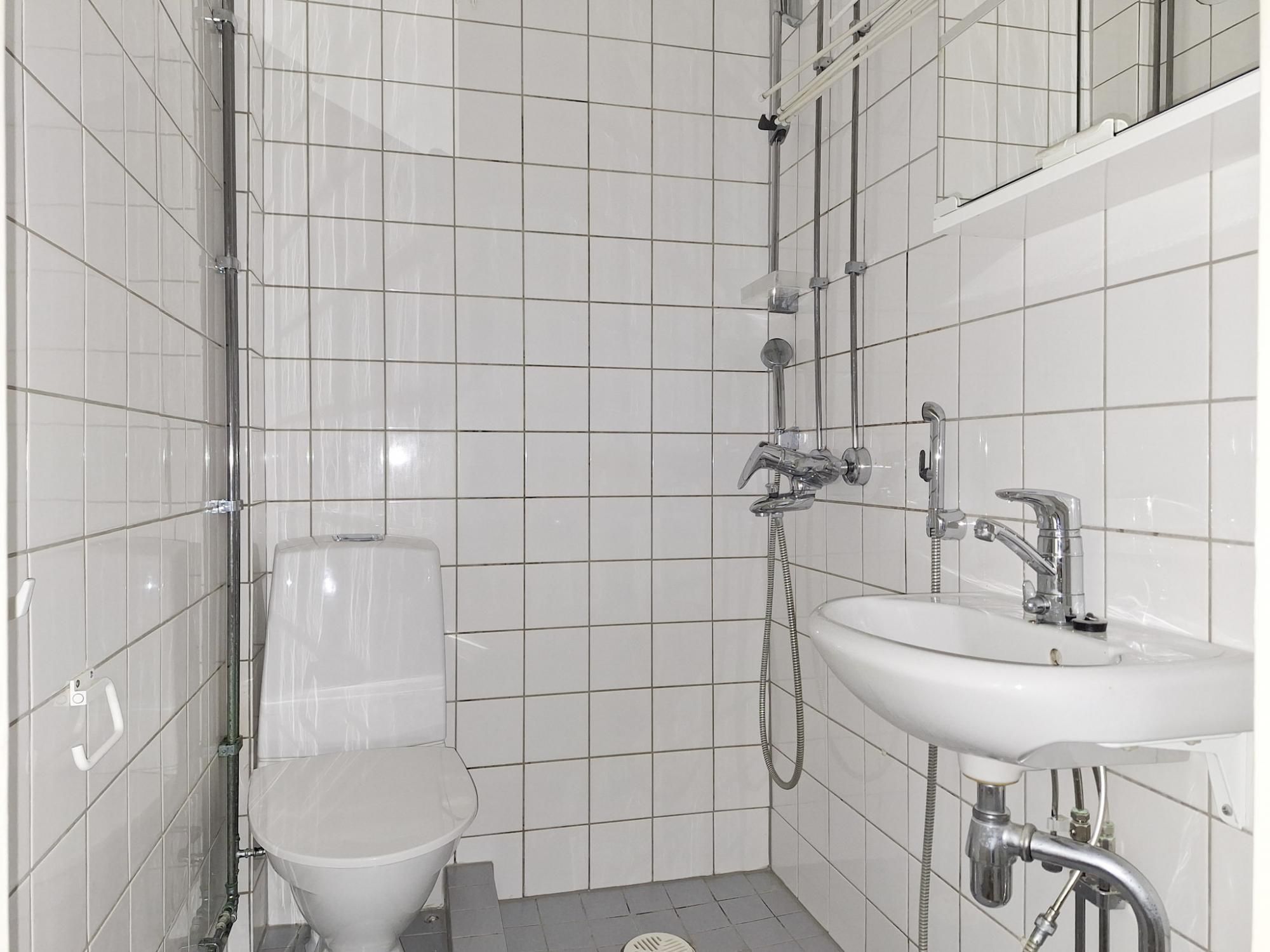 Kylpyhuoneeseen ei ole mahdollista asentaa pyykinpesukonetta eikä taloyhtiössä ole pesulaa.
