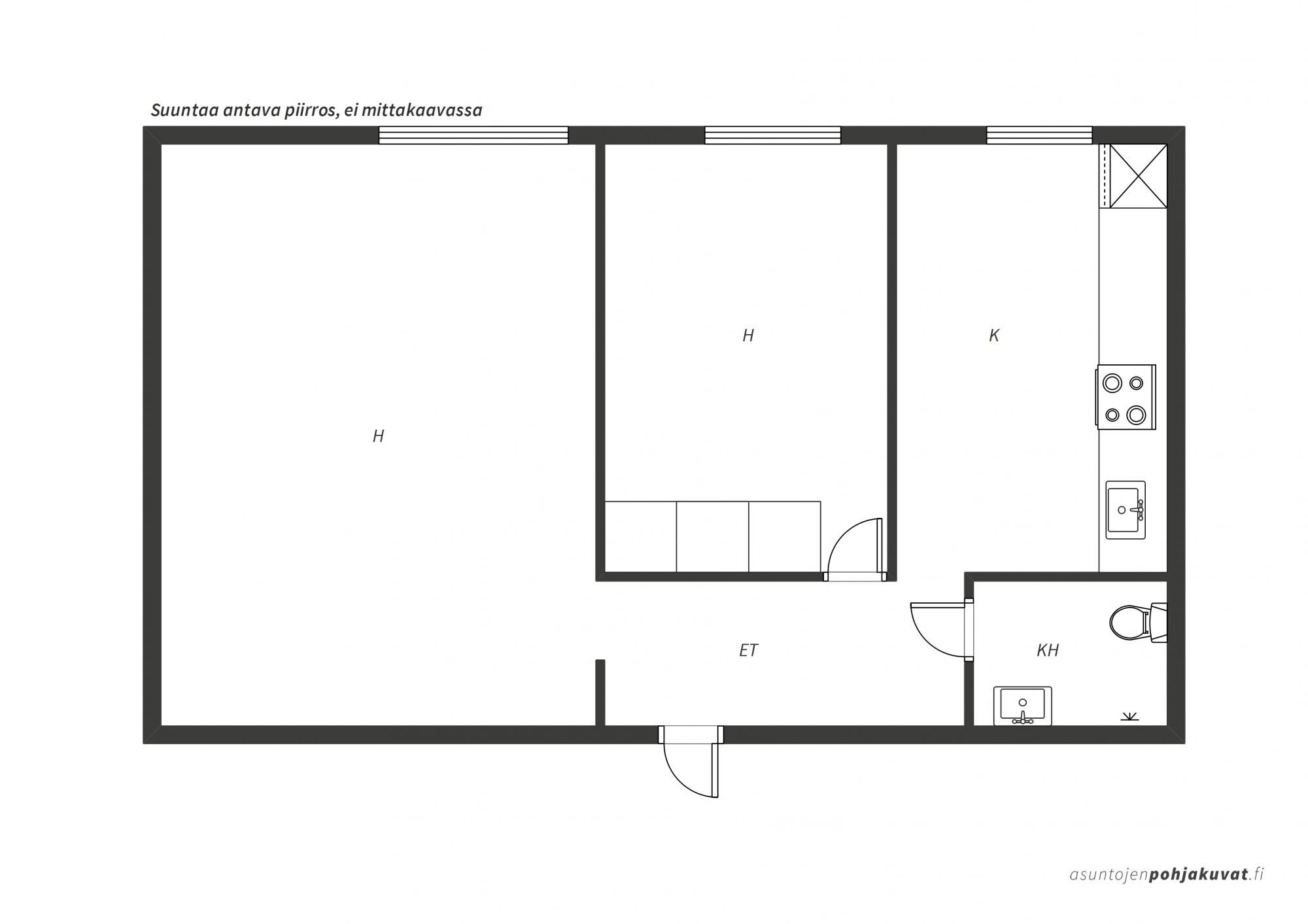 Kerrostalo, 50 m², 2h + k + kph