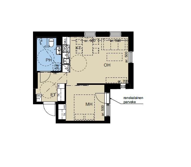Kerrostalo, 39,5 m², 2h + ak + ranskalainen parveke