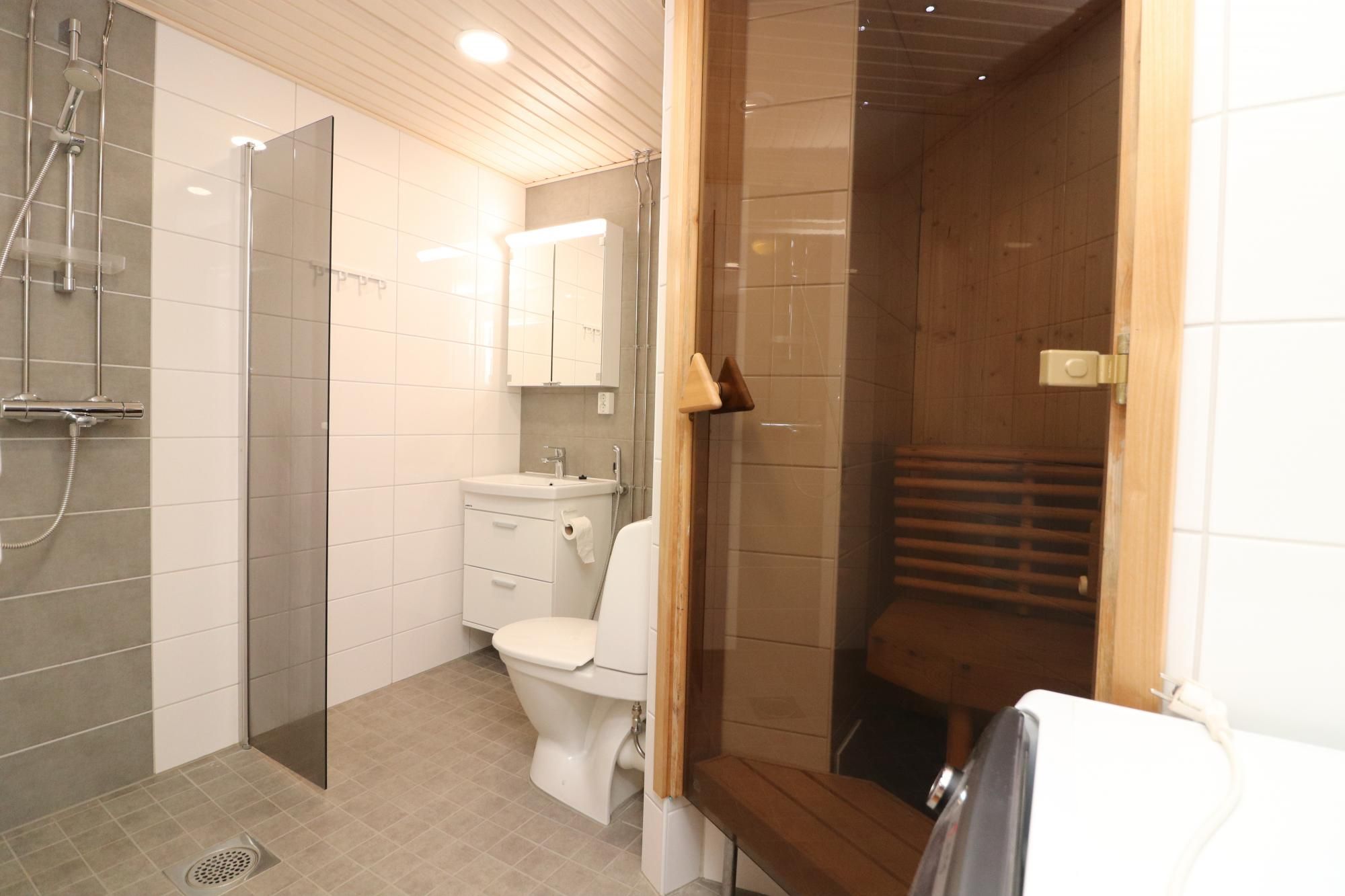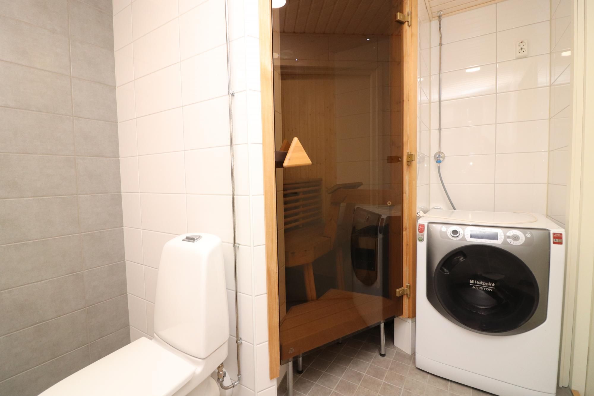 Taloyhtiön tilat:Urheiluvälinevarasto, kellarikomero, jäähdytetty kellari, pesutupa, kuivaushuone, sauna