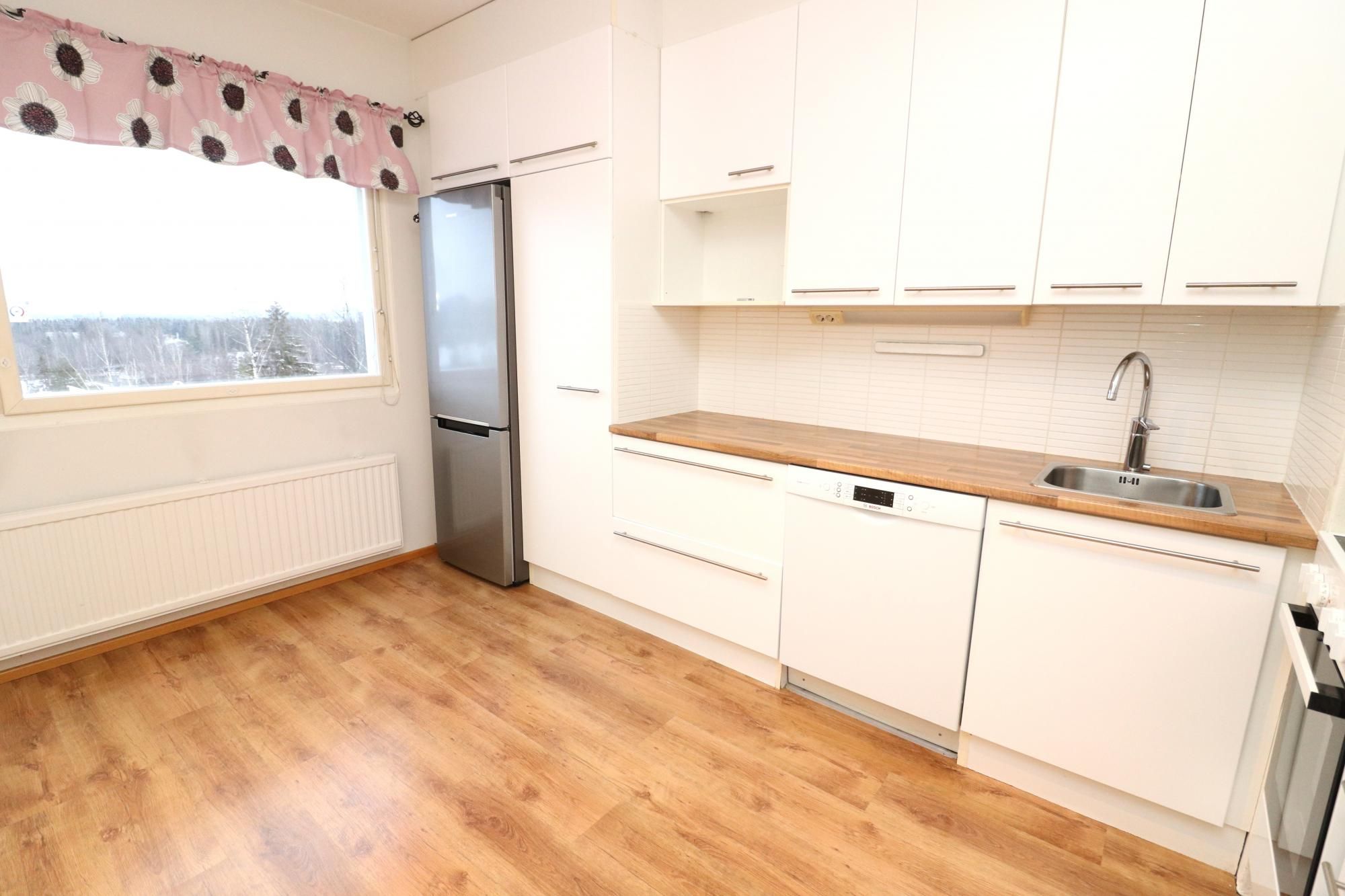 Keittiössä vaaleat kaapistot, jääkaappi/pakastin, astianpesukone sekä liesi- ja liesituuletin. Olohuoneesta käynti lasitetulle parvekkeelle. Wc/kylpyhuoneessa on liitäntä ja tila omalle pyykinpesukoneelle sekä sauna, jossa on lauteiden alla venekaiuttimet. Säilytystilaa on molemmissa makuuhuoneissa ja eteisessä. Inkilänmäeltä on hyvät julkisen liikenteen yhteydet ja lähin kauppa on tien toisella puolella. Puijon lenkkimaastot on myös vieressä.