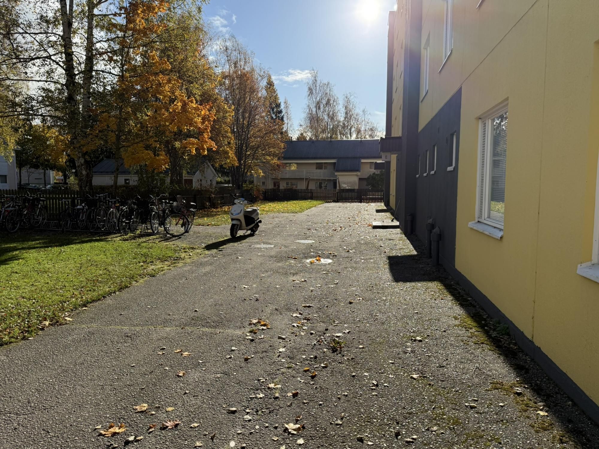 Taloyhtiössä on pyörävarasto sekä asunnon yhteyteen kuuluu häkkivarasto. Kadulla on pysäköintitilaa sekä tolppapaikan saa jonostusperiaatteella. Taloyhtiössä on hissi. Lähin ruokakauppa on muutaman minuutin kävelymatkan päässä.
