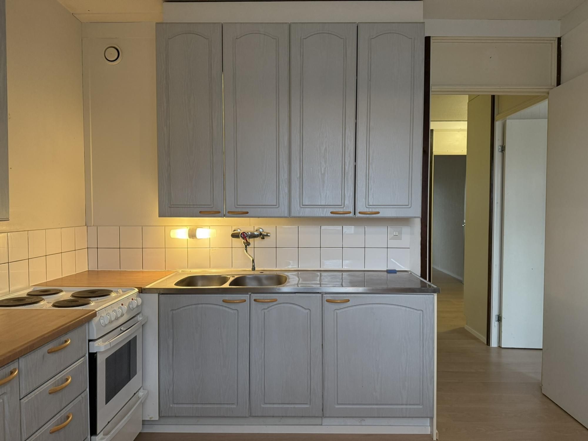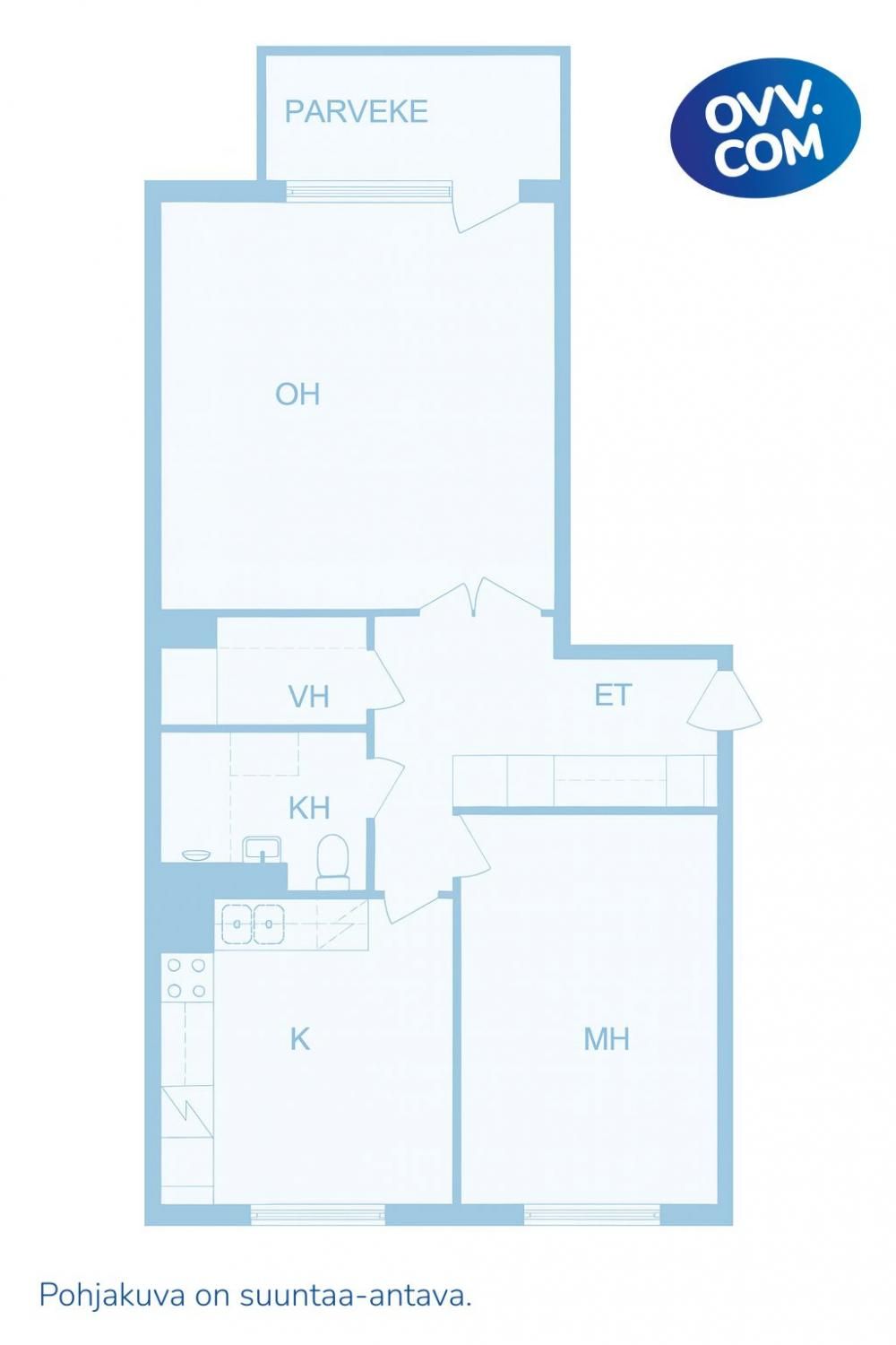 Tämän kaksion viihtyvyyden takaa toimiva pohjaratkaisu sekä ylin kerros. Pohjaratkaisuna väljät huoneet takaavat toimivan arjen. Pinnat ovat vaaleat ja raikkaat. Olohuoneen yhteydessä on lasitettu parveke. Olohuone on iso ja saat oleskelutilan lisäksi esimerkiksi työpisteelle oman tilan. Eteisen yhteydessä on kiinteää kaappitilaa sekä iso vaatehuone sujuvoittamaan arkea. Keittiössä on hyvin tilaa kokata ja ruokailla.