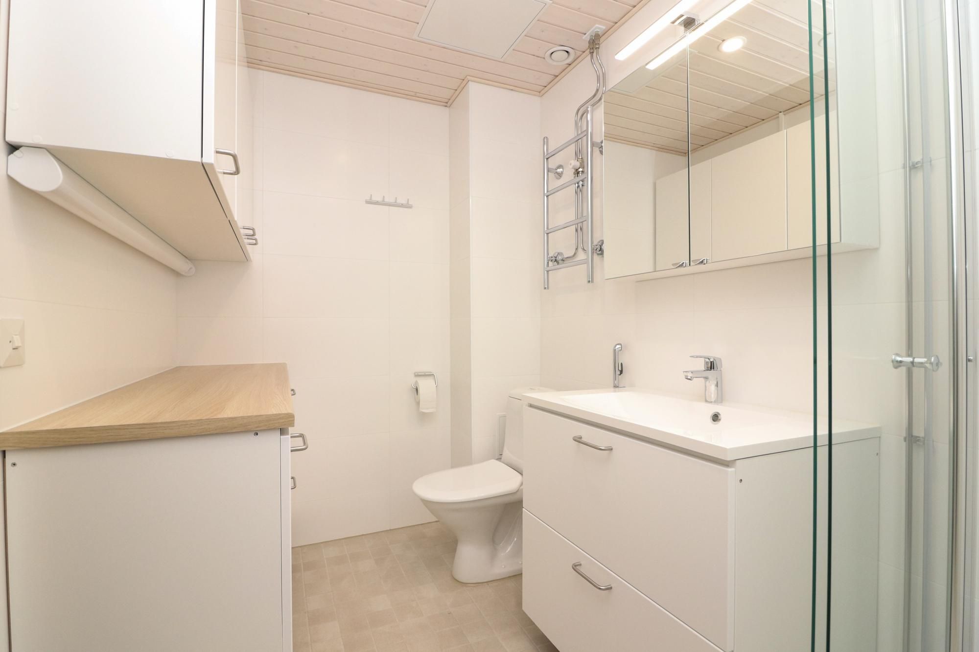 Nyt tarjolla uniikki ja täysin remontoitu huoneisto rauhalliselta Puijonlaakson alueelta. Alakerrassa kodikas keittiö, jonka varusteluun kuuluu modernit valkoiset kaapistot, jääkaappi, pakastin, uuni, liesitaso, liesituuletin sekä astianpesukone. Keittiöön mahtuu hyvin myös ruokapöytä. Alakerrasta löytyy myös avara olohuone, makuuhuone, kylpyhuone sekä tilava eteinen. Makuuhuoneesta käynti omalle pihalle. Yläkerrassa kaksi makuuhuonetta, takkahuone, wc, suihkutila, sauna sekä erittäin tilava lasitettu parveke. Makuuhuoneiden säilytystilana kaapistot ja ulko-oven vierestä löytyy iso ulkovarasto. Kyseisen asunnon osalta putkistot on uusittu asunnon remontin yhteydessä ja kylpyhuoneesta löytyy liitäntä pyykinpesukoneelle. Vuokraan sisältyy autotallipaikka.