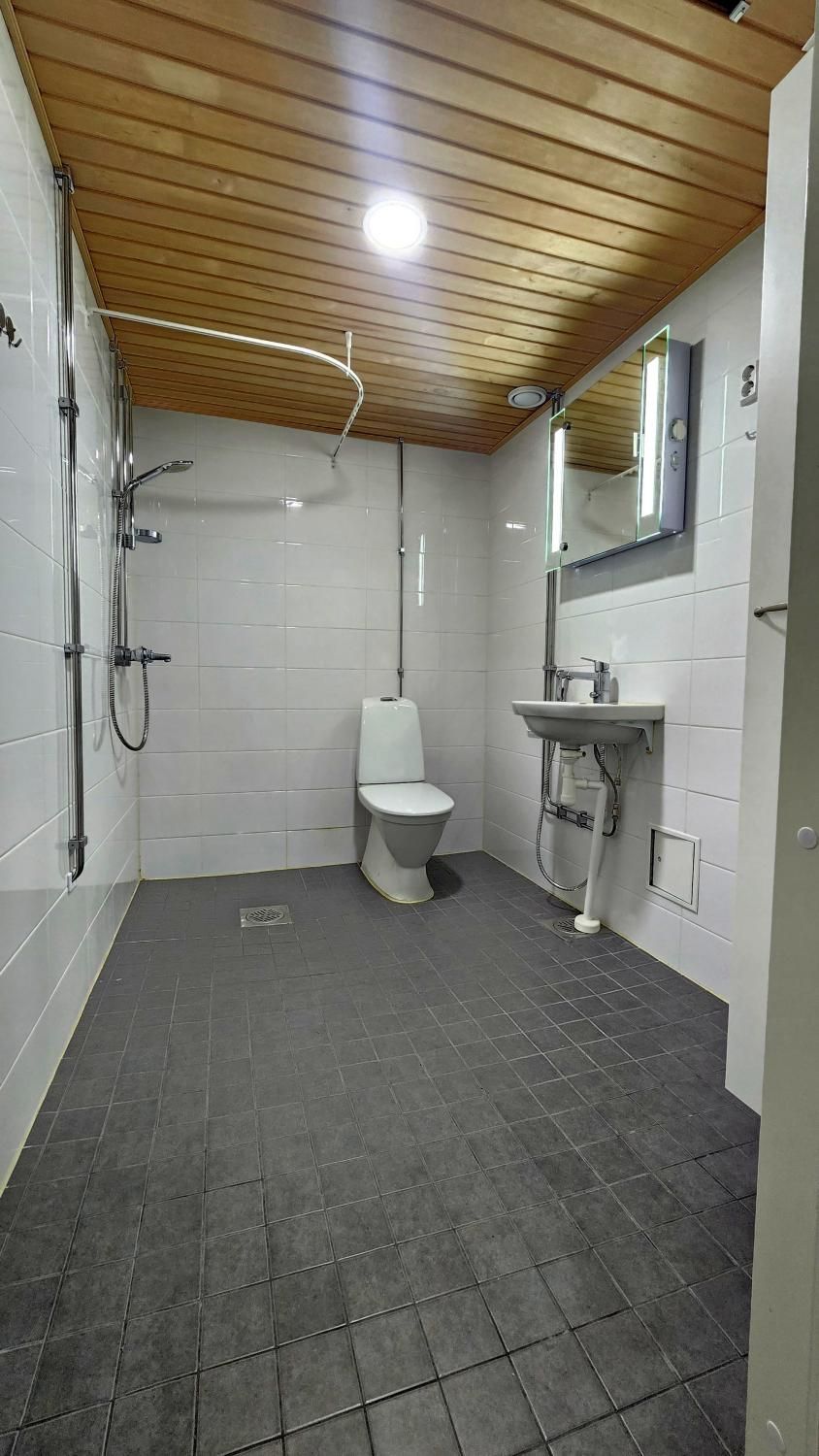 Kylpyhuoneessa paikka pyykinpesukoneelle.