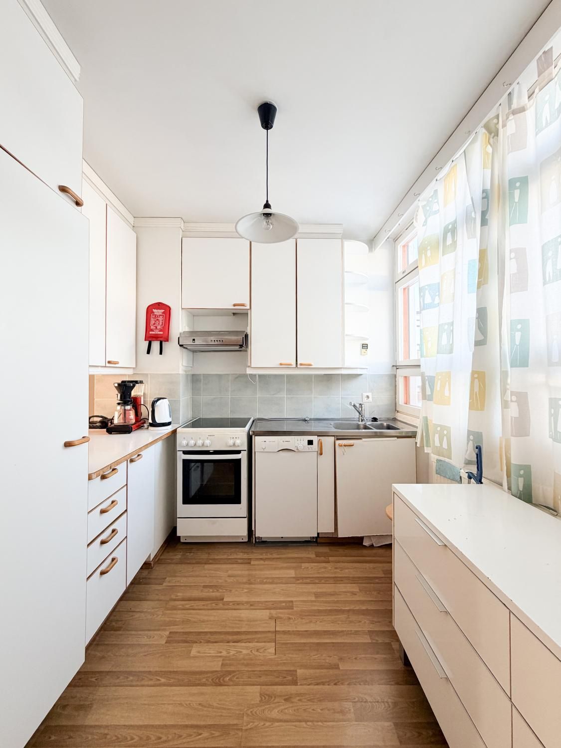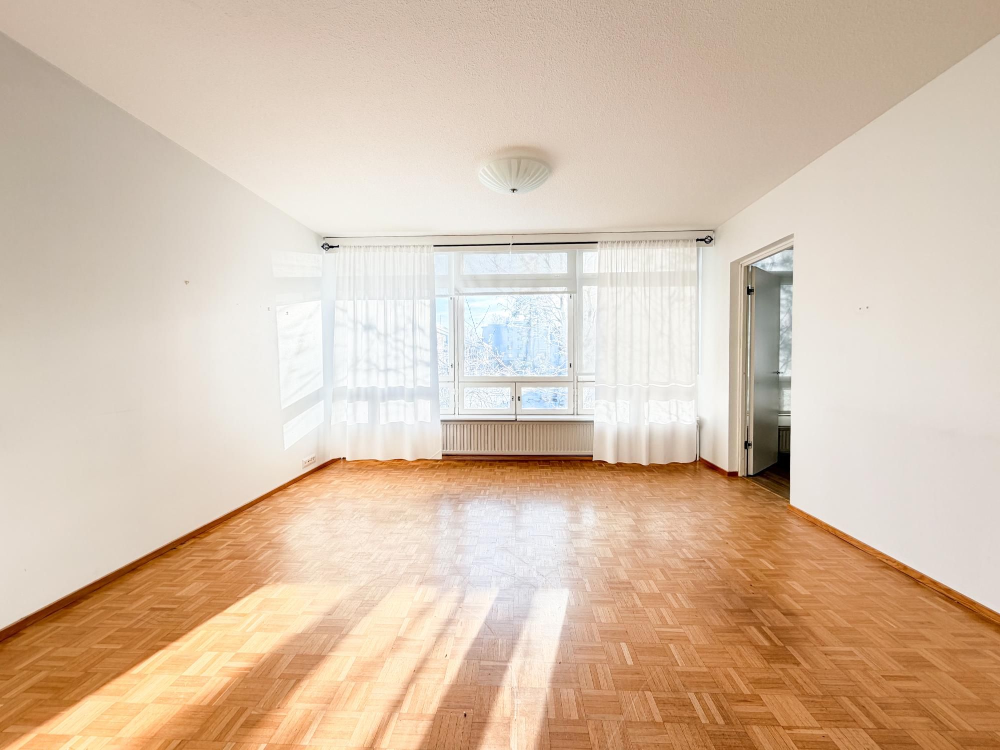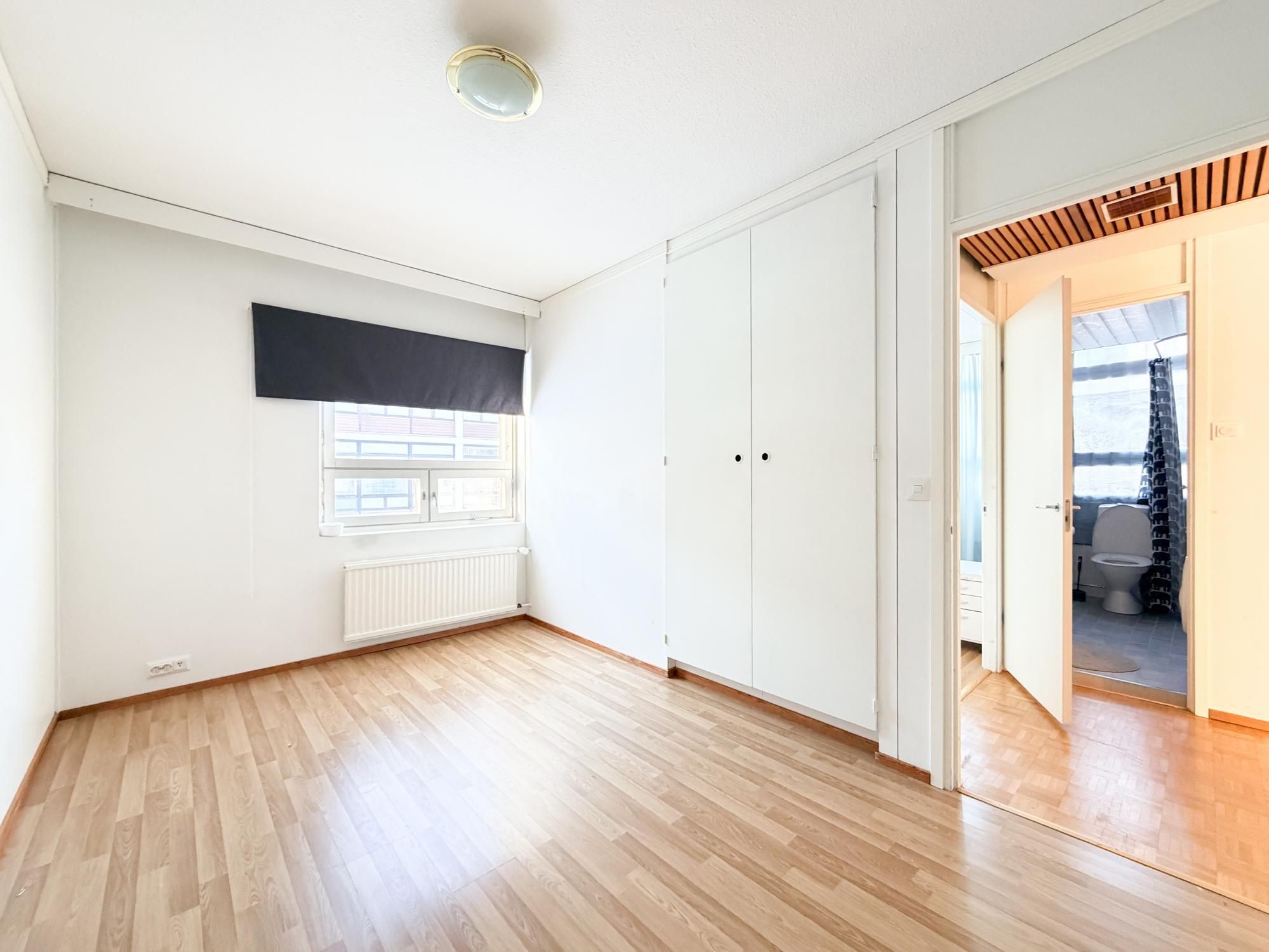 Valoisa läpitalon asunto, jossa suuret ikkunat ja tilavat huoneet. Remontoitu kylpyhuone ja erillinen wc.
