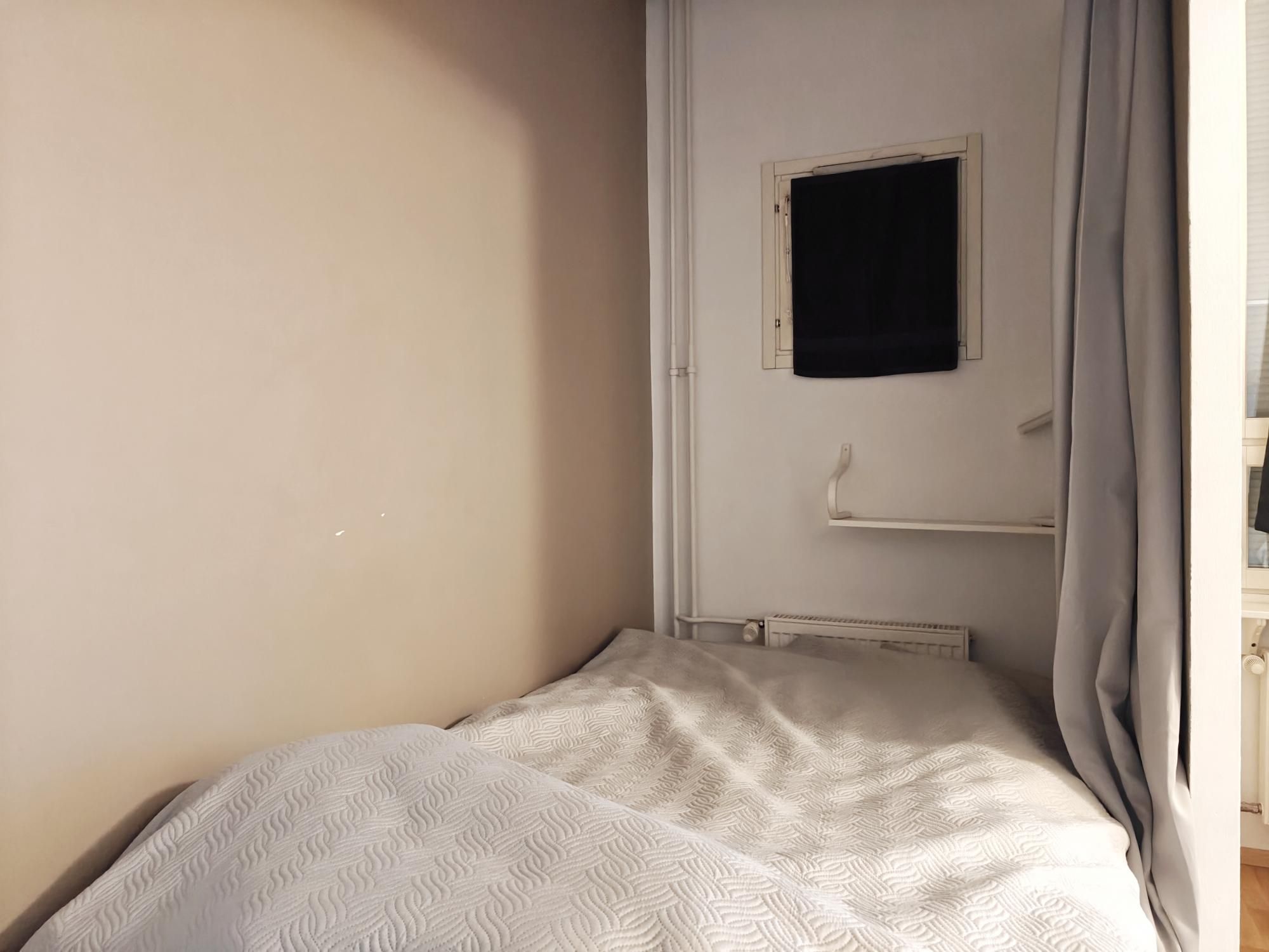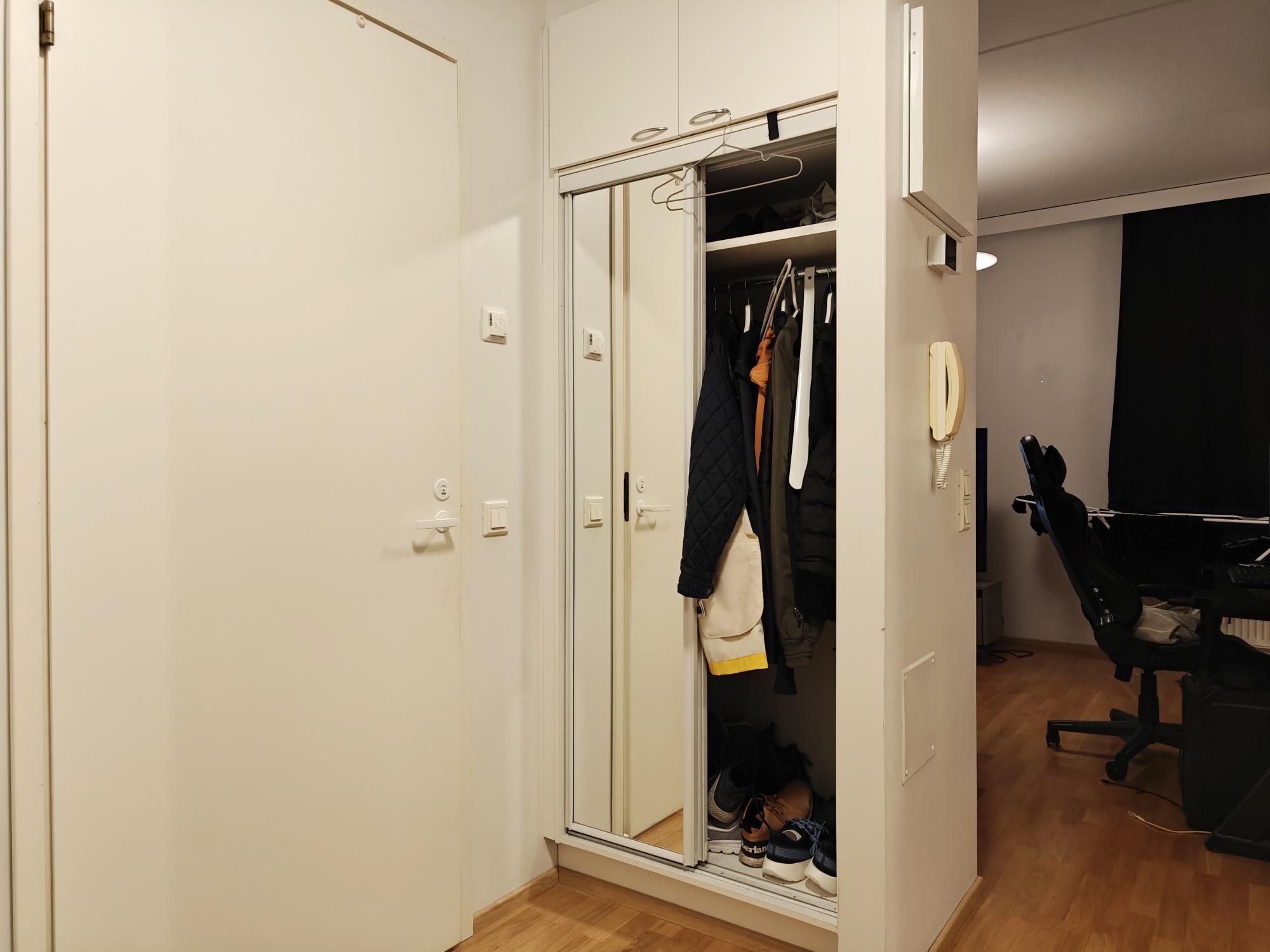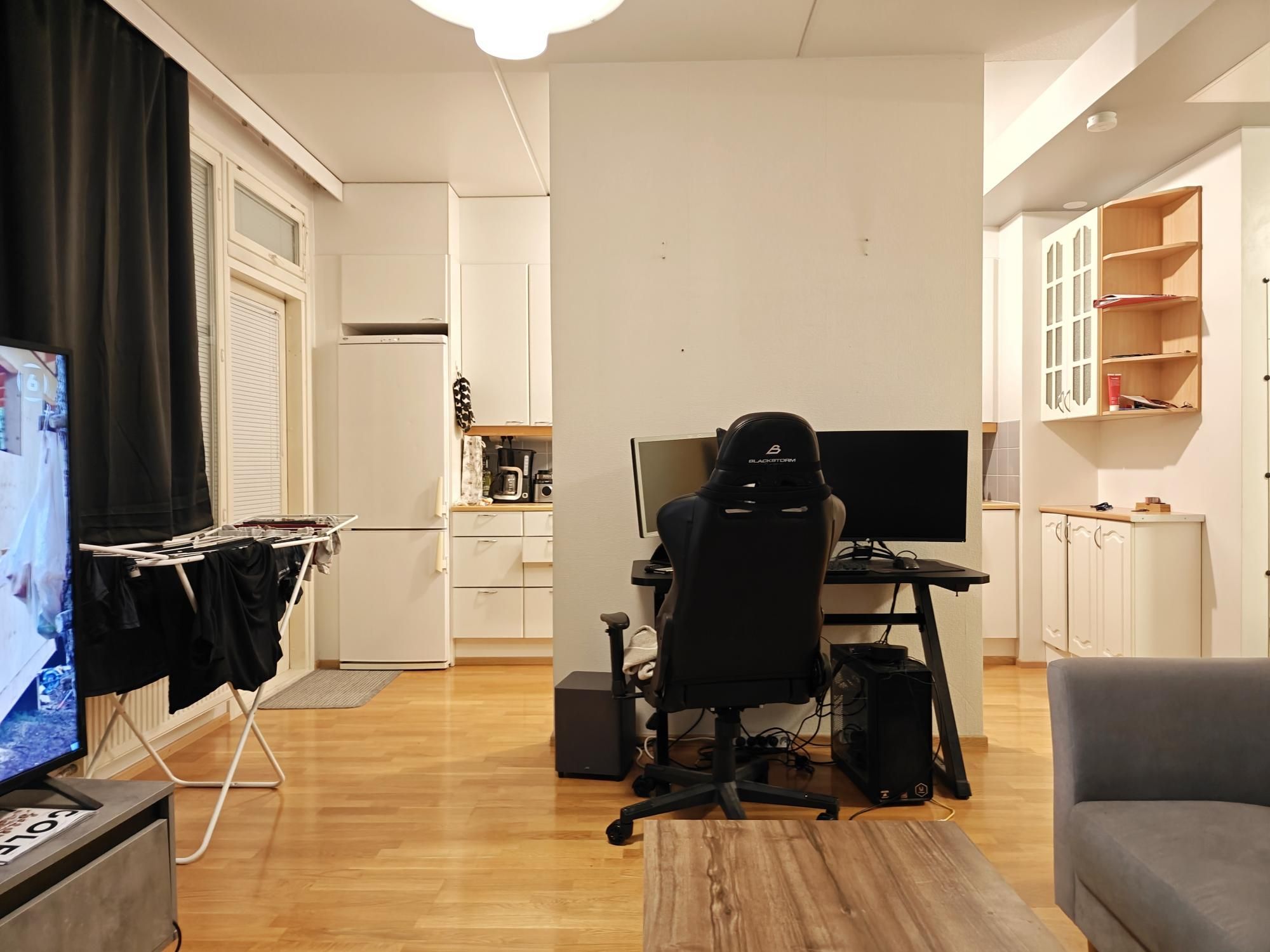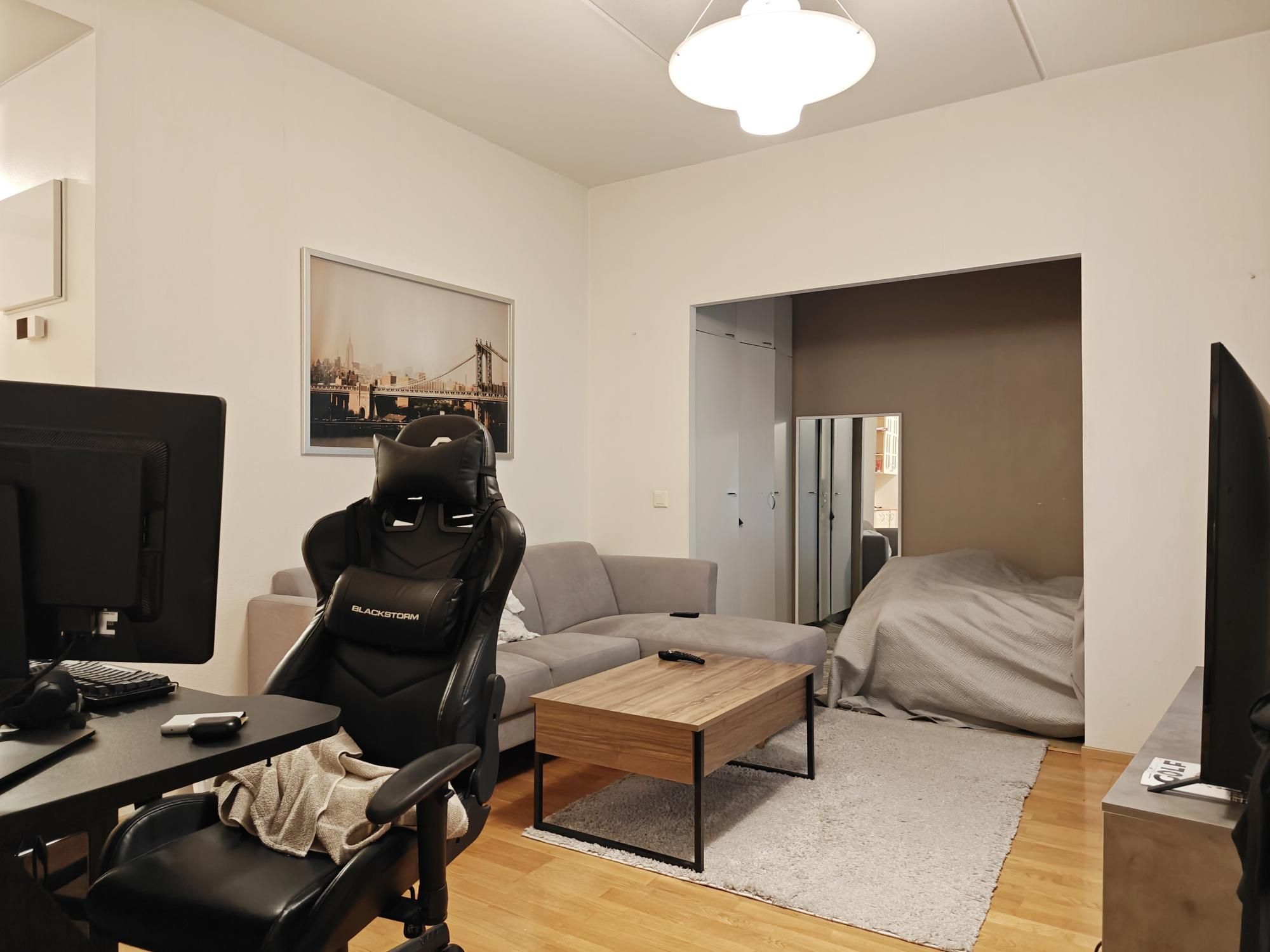 Erittäin tilava yksiö omalla saunalla ja eristettävällä alkovilla vapautumassa vuodenvaihteeseen. Kätevä pohjaratkaisu ja mukavasti säilytystilaa. Lasitettu parveke!