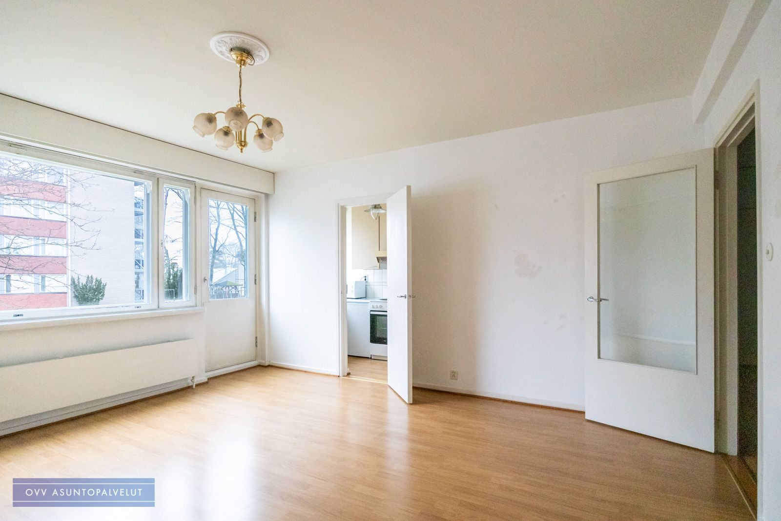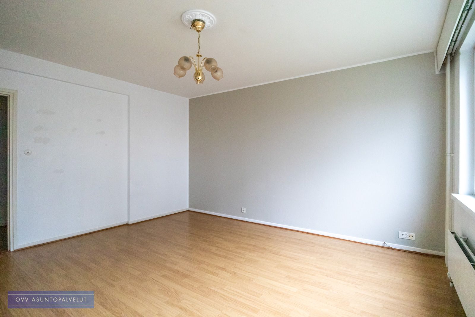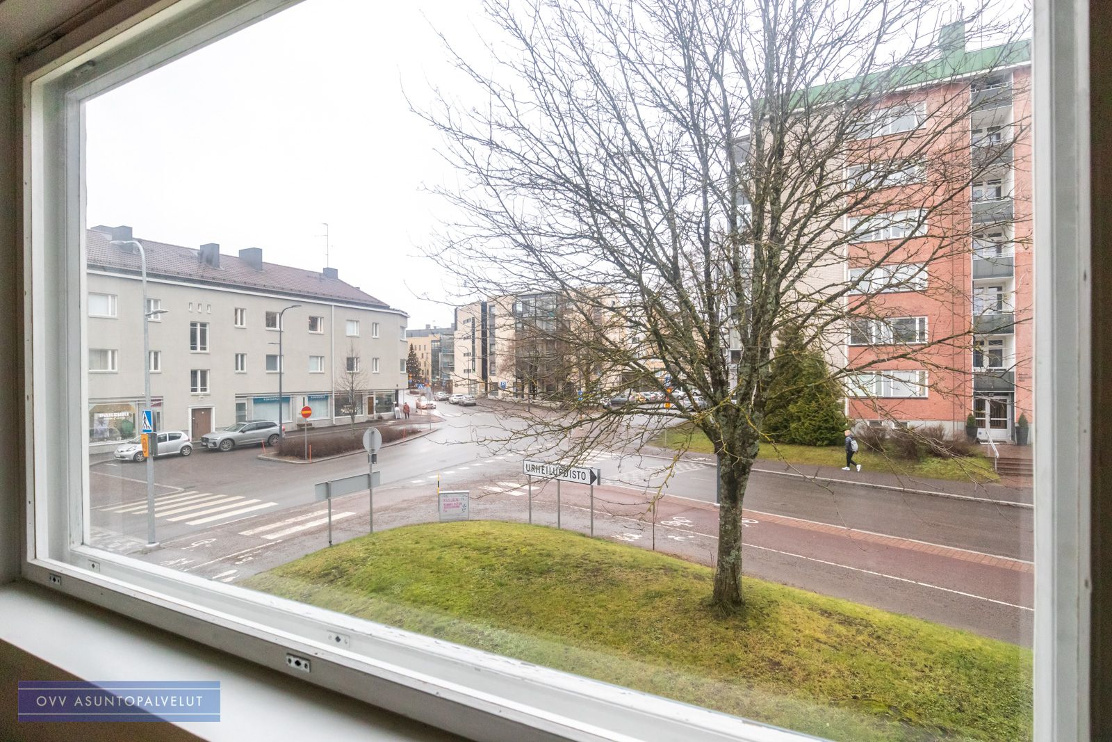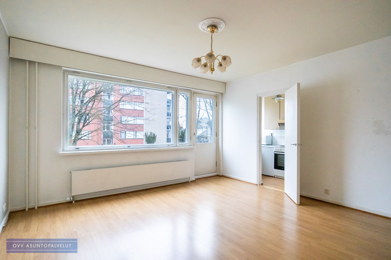 Asunnossa selkeä pohjaratkaisu. Iso olohuone, josta käynti keittokomeroon. Olohuoneessa ikkunanäkymät ja ranskalainen parveke Urheilukadun suuntaan.