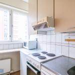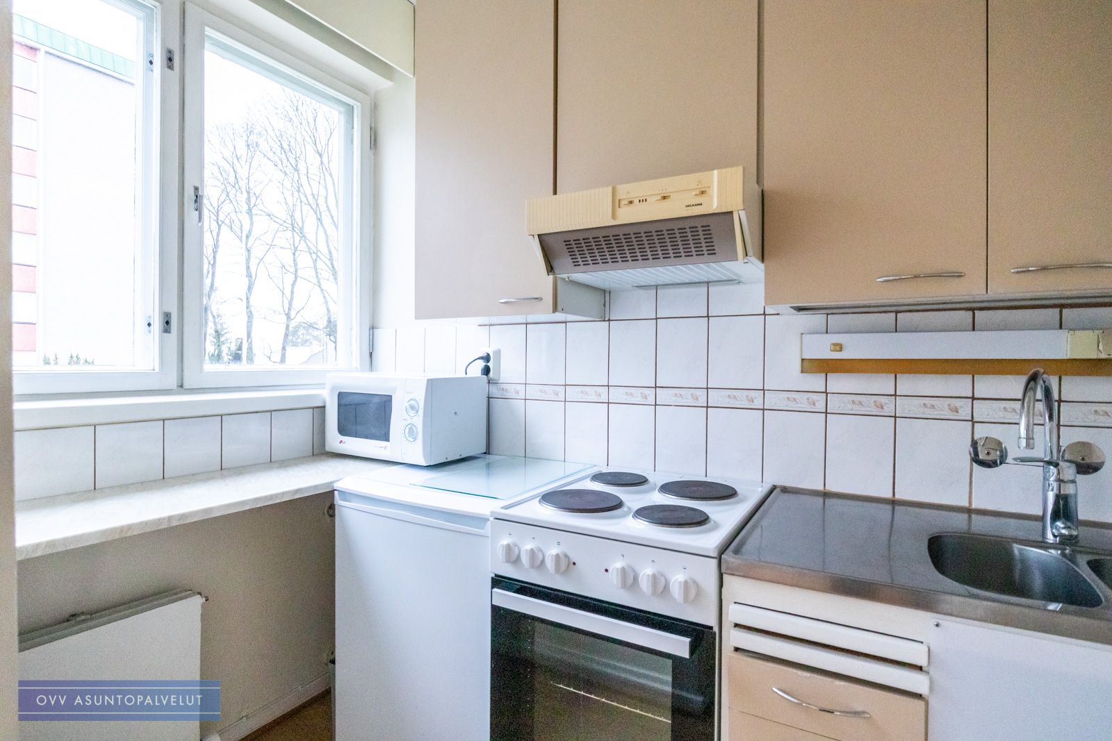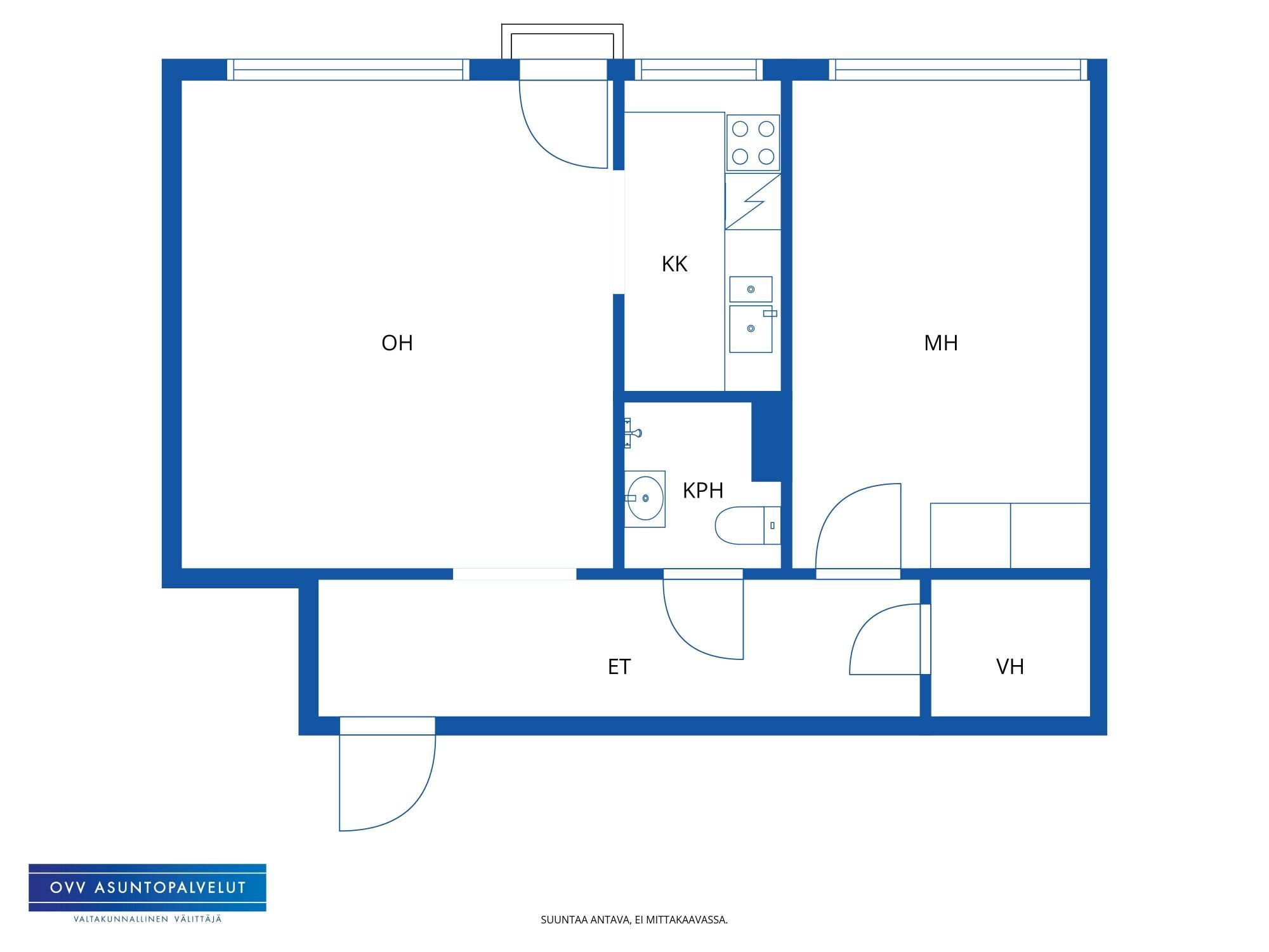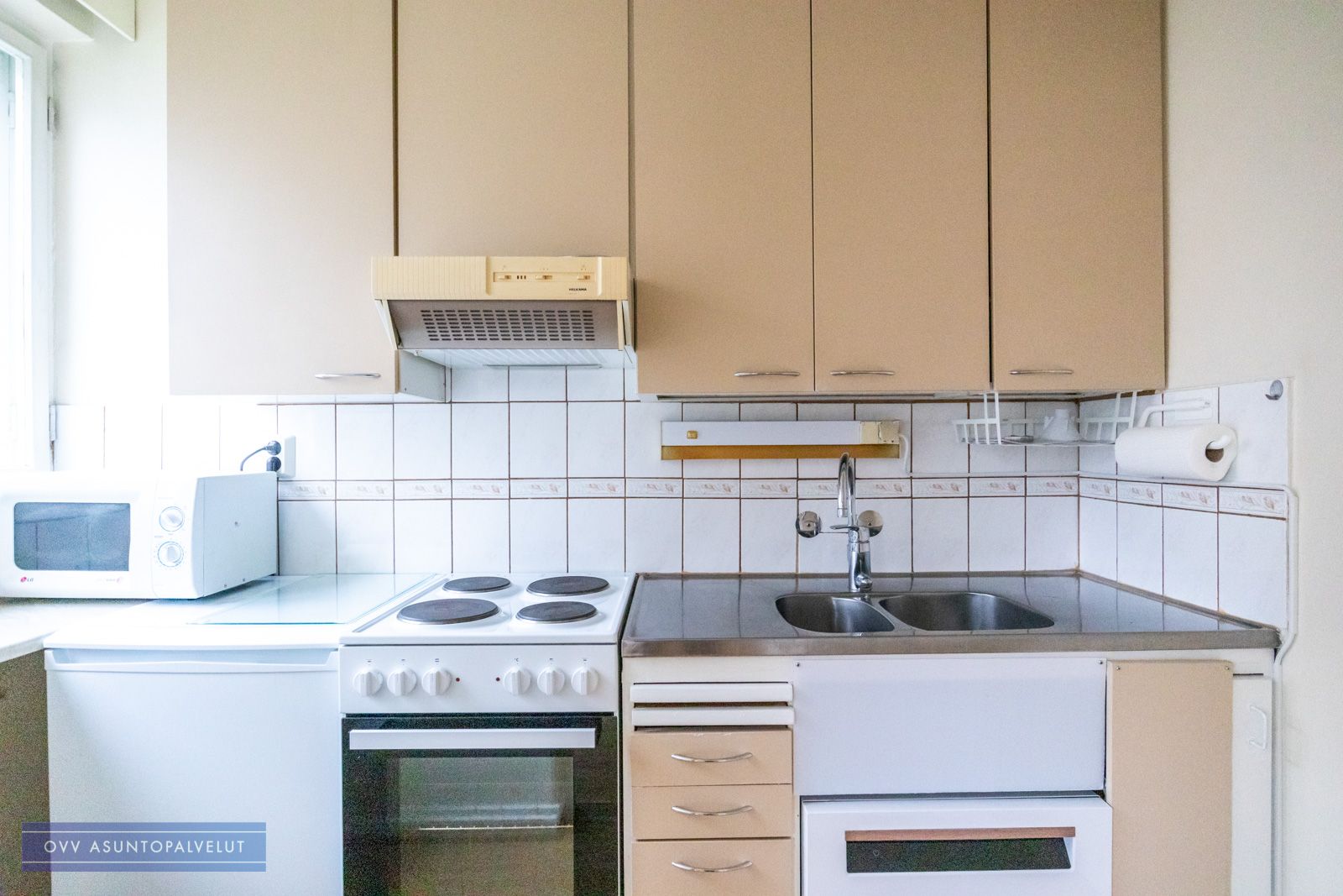 Asunnossa selkeä pohjaratkaisu. Iso olohuone, josta käynti keittokomeroon. Olohuoneessa ikkunanäkymät ja ranskalainen parveke Urheilukadun suuntaan.