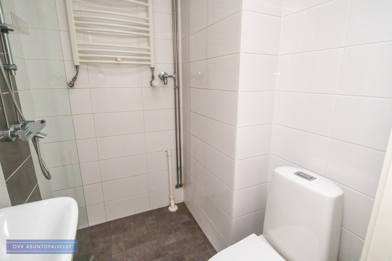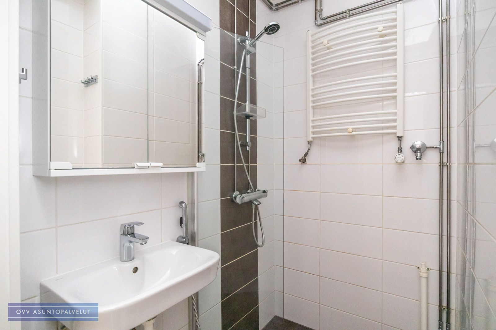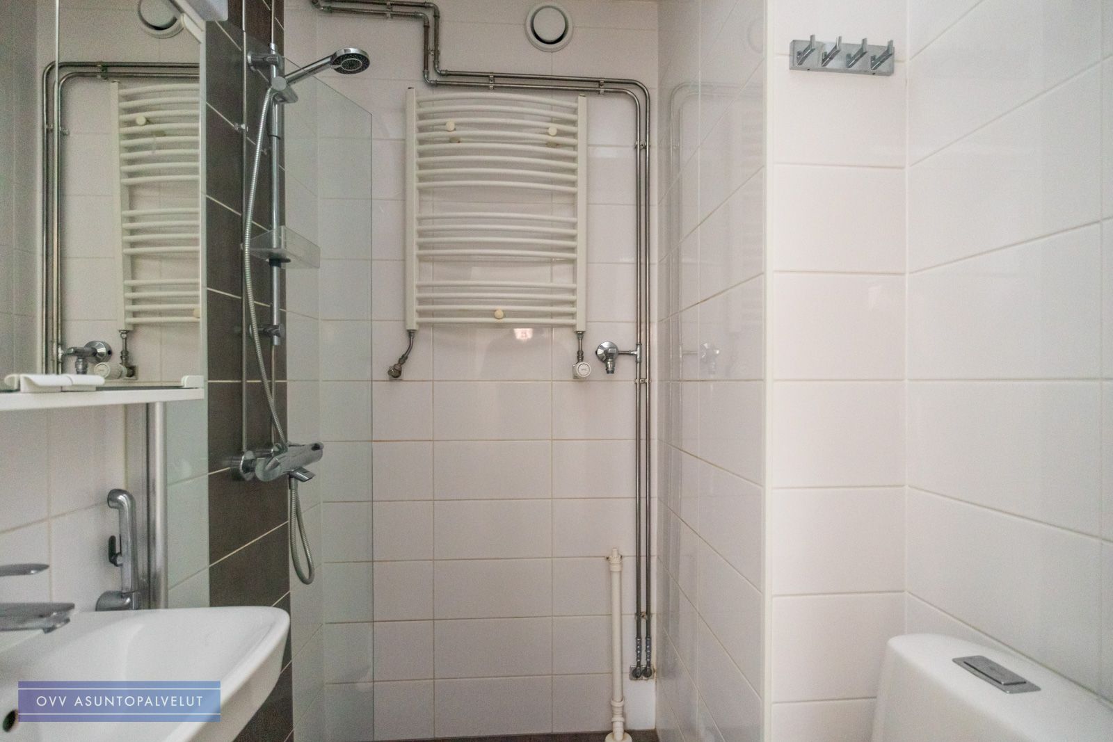 Asunnon kylpyhuone on uusittu muutama vuosi sitten moderniksi. Kylpyhuoneesta löytyy liitännät pyykinpesukoneelle tai asukas voi käyttää taloyhtiön pesutupaa.