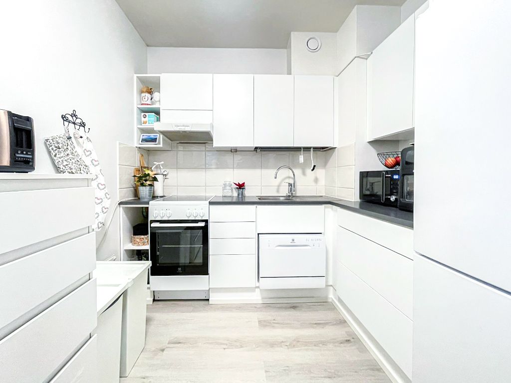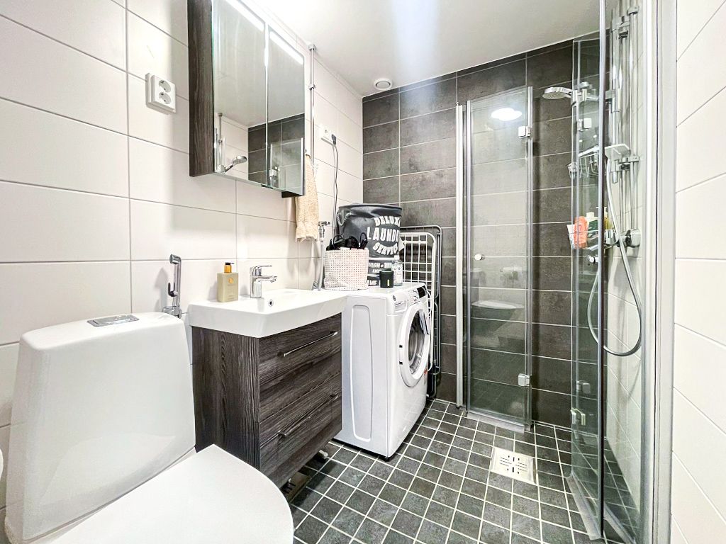 Remontoidun avokeittiön/keittokomeron varusteluun kuuluu kaapistot, uuni, liesi, liesituuletin, jääkaappipakastin sekä astianpesukone. Kylpyhuone on uusittu putkiremontin yhteydessä ja siellä on valmiina pyykinpesukone vuokralaisen käytettävissä. Säilytystilaa löytyy eteisestä ja vaatehuoneesta.