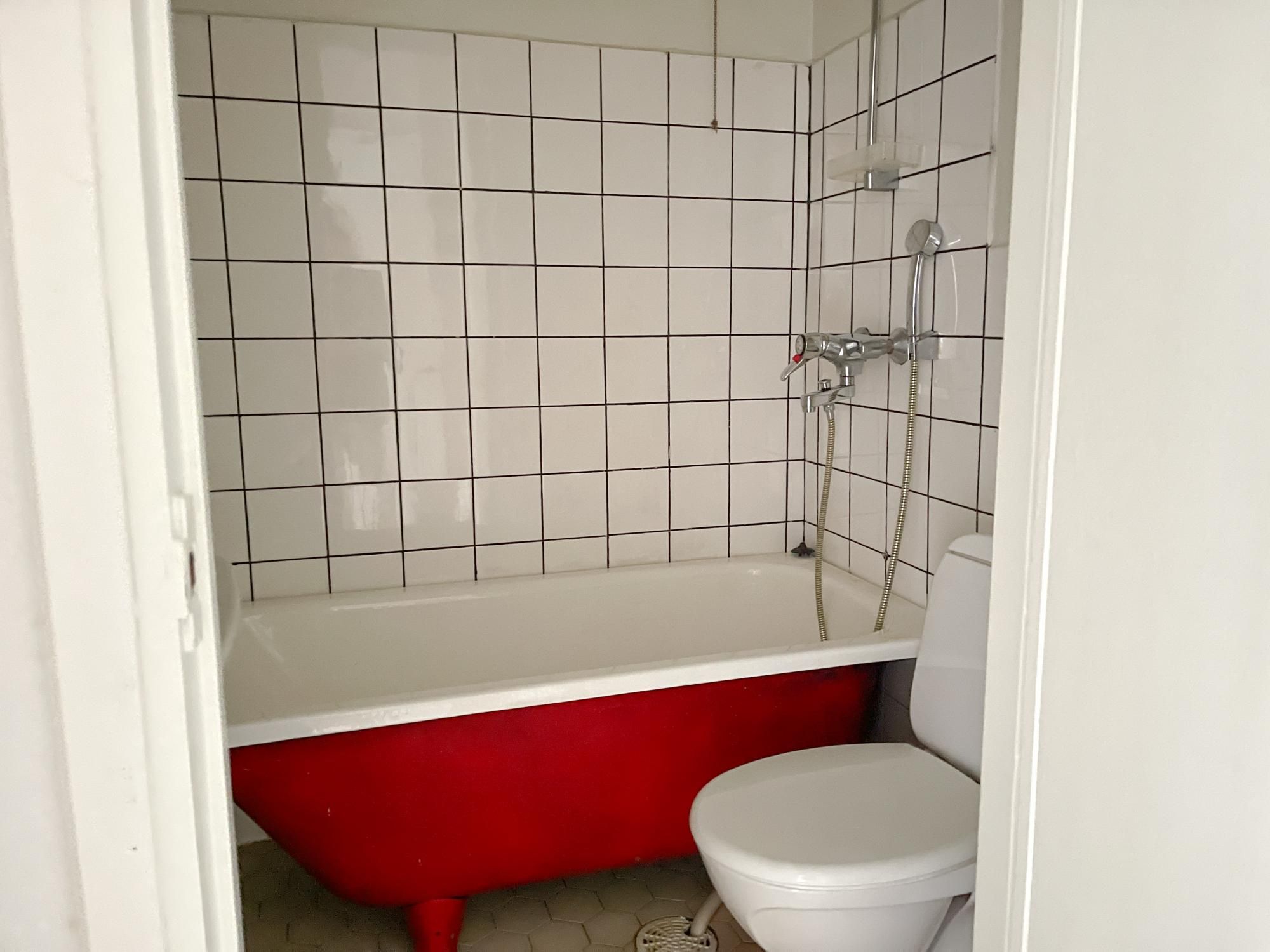 Kylpyhuoneessa odottaa klassinen kylpyamme, joka tuo asuntoon ripauksen vanhan talon charmia.