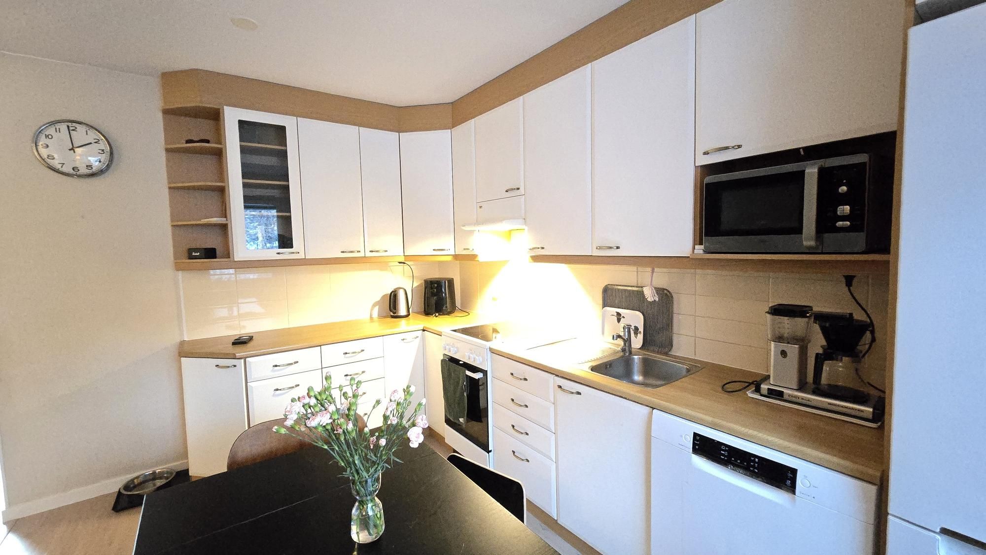 Alakerrassa keittiö, olohuone ja käynti takapihalle. Alakerta remontoitu 2025.