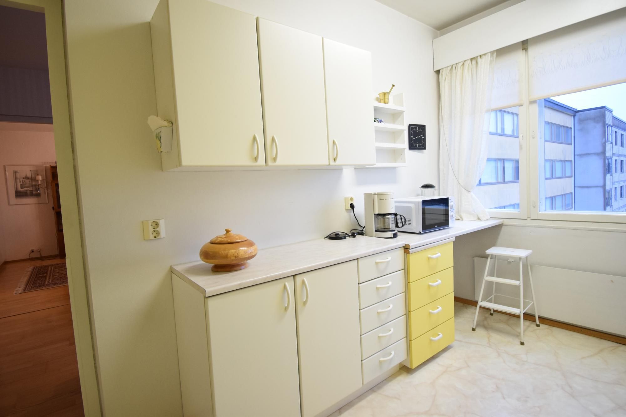 Läpitalon oleva, todella valoisa koti. Isossa olohuoneessa on sähkötakka ja käynti lasitetulle, tilavalle parvekkeelle. Asunnossa on 2 sisäänkäyntiovea ja on mahdollista eriyttää erillisiksi tiloiksi. Upeat näkymät uusitusta ikkunoista.