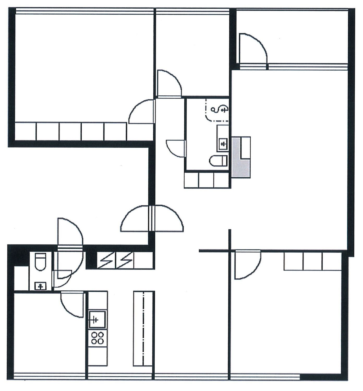 Asunnossa on 4 makuuhuonetta, keittiö, erillinen ruokailuhuone, 2 wc:tä ja lasitettu parveke.