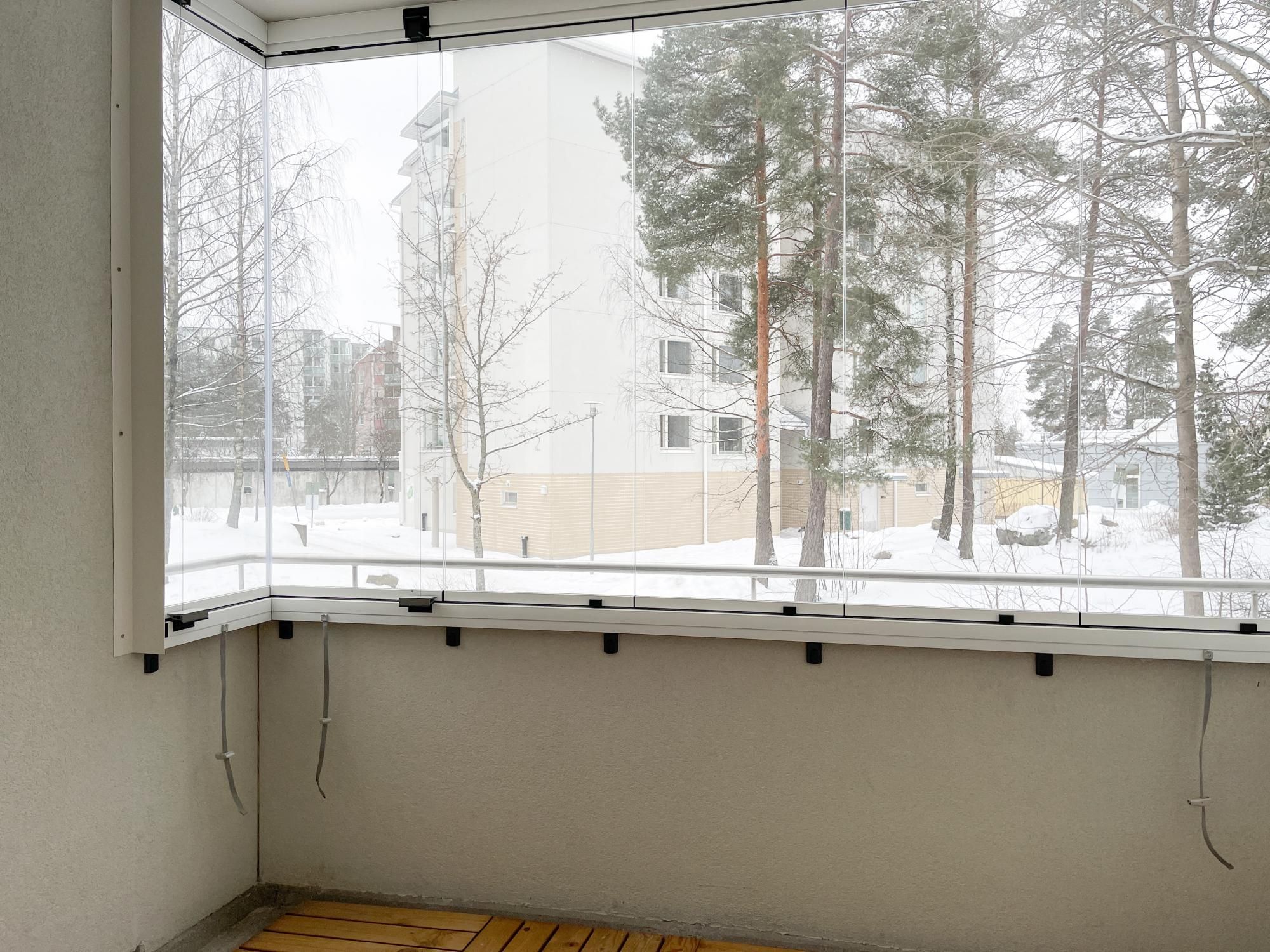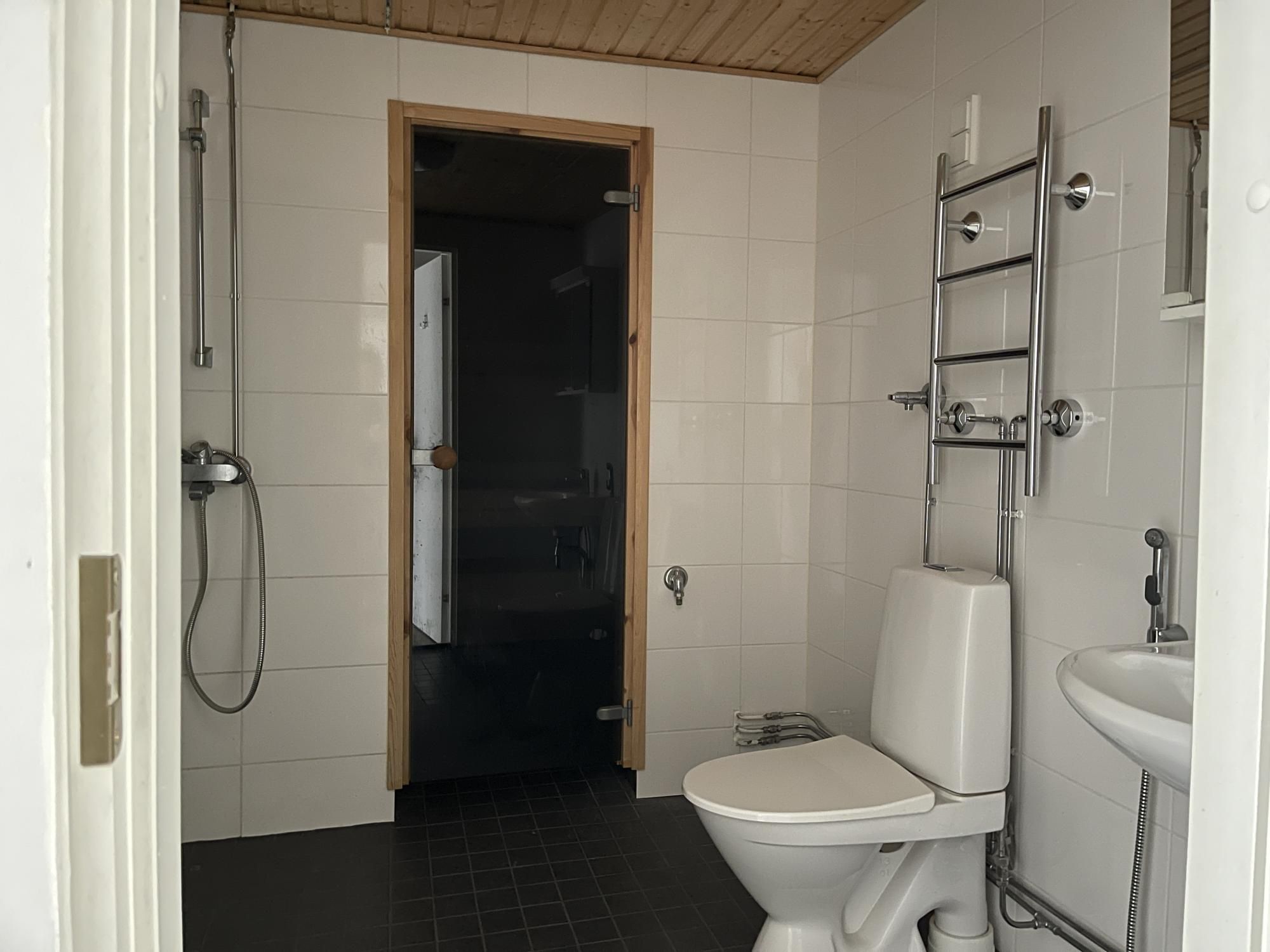 Kylpyhuoneessa on liitäntä pyykinpesukoneelle. Lisämukavuutena oma sauna ja lasitettu parveke.
