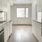 Keittiössä on riittoisasti kaappitilaa ja varusteluun kuuluu uuni, liesi, liesituuletin, jääkaappipakastin ja tila astianpesukoneelle.